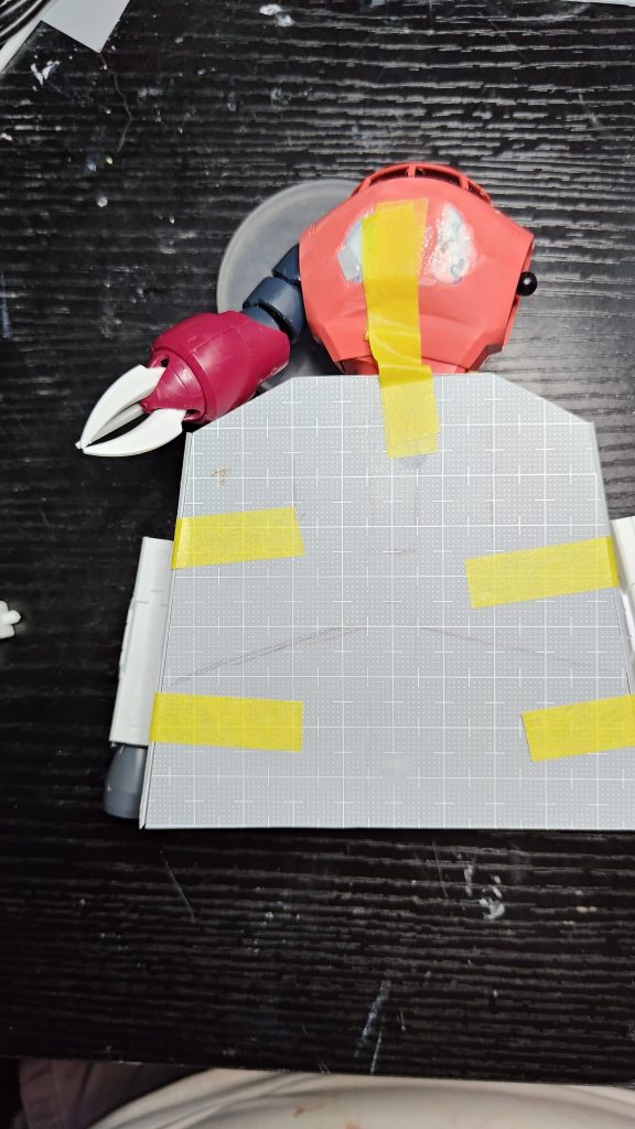 クーベルメには淵の部分に傾斜をつけました、ポリパテが中々方まわないので硬化剤が足りないのかもしれません