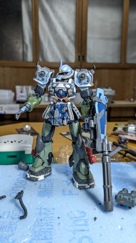 たしかにグフにザクの足使うとちよっと細身になっちゃいますねー💦💦さて、どうしようかなぁ😅