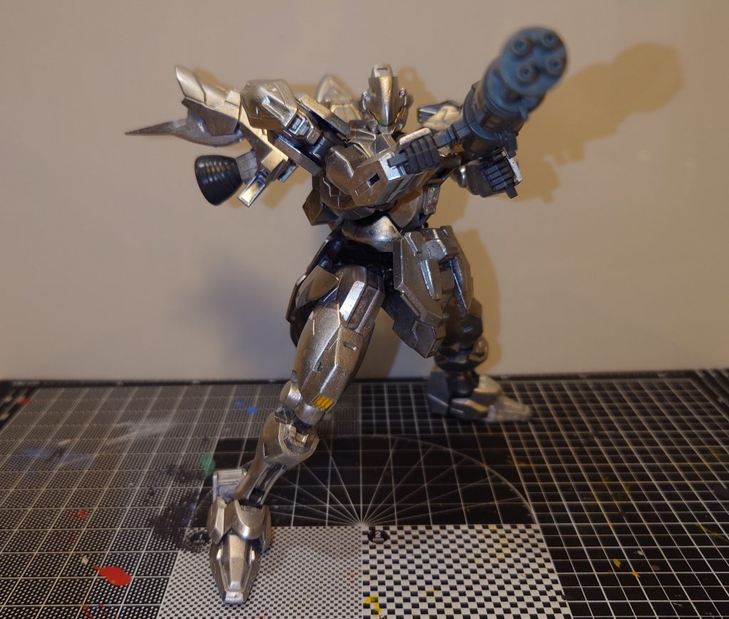 シルバーで全塗装したまではよかったんですが、そこからアクセント部分の塗装→トップコートに手をつけれず、気がつけば放置状態で違う作品作ってしまってます(-_-;)