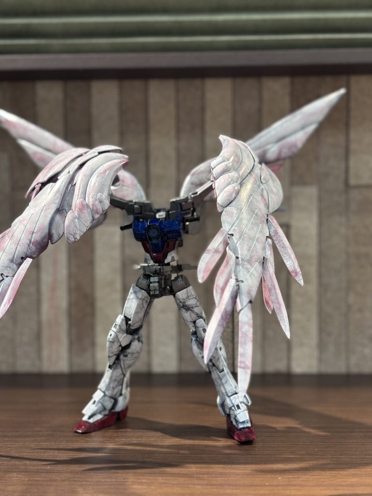 Hiro0079 2025.08/01更新 仮組〜ゼロカスタム〜 24 14 いいねしたモデラー(14) 0 作品を共有 本体の大理石塗装、翼の蛇紋塗装、フレームの塗装が済んだので、組めるところ組んでみました。 大理石塗装は白いボディのガンダムタイプに合うんじゃない?と思っちゃいました。ちなみに赤青パーツ全てに施していますがあまり目立ちません。 蛇紋塗装を施した翼は浮き出した血管を表現したかったのですが、かなりスプラッターです😅ガンダムには合わないかな。元ネタはYouTubeで拝見したエヴァ量産型です。天使の羽つながり…う〜ん😓 制作中 コメント コメントをして応援しよう コメントにはログインが必要です Hiro0079 2度目の出戻りモデラーです。食わず嫌いなくなんでも作りますが、宇宙世紀もの、中でも初代ガンダムが大好物です。 初代ガンダムブームで作り始め、MGガンダムで1度目の出戻り、子供が大きくなり、自分の時間を持てるようになり2度目の出戻りです。 作品を作る時、工作や塗装、何か一つテーマを持って作るように心がけています。 ガンプラを通じてたくさんの人と交流をもてたらと思います。 Hiro0079さんがお薦めする作品 〜バトンをつなぐ〜 R・W・R ジークアクス 撮り直しです ジャブローに散る‼️ 3 過去作でごめんなさい 過去に投稿したモノです。コンプリート企画で現在型番キットがこ… 1 堕天使 「紅組はあきらめない‼️」 これまた未完成で申し訳ございませ… 6 RG νガンダム 〜fake M.C. M〜 まだ完成してないんだけど、紅組応援の為出撃します‼️紅白戦第… 10 陸戦型ガブスレイ 紅組劣勢なので急遽撮影し参戦しました😊 グリプス戦役中、中破… Hiro0079さんのページ この作品をお薦め作品に設定する Please login to update your profile! Please login to update your profile! Please login to update your profile! Please login to update your profile!