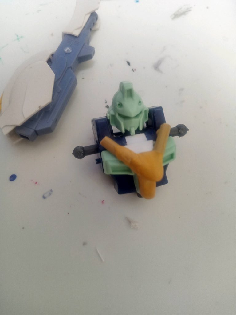 ガンブラスターを改造してV2アサルトガンブラスター化しよう計画。とりあえず思いつくまま弄ろうと思います。まずは胸部を削ってvの字に。ついでにジャンクパーツでっちあげて自分なりのバスターパーツにしてやろうと弄ってます。