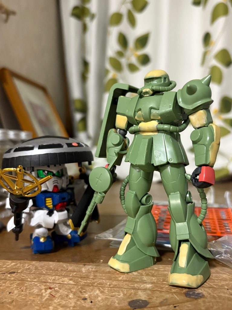 G-spark 2025.08/08更新 FGザク 進捗報告。 40 22 いいねしたモデラー(22) 0 作品を共有 FGザクの全身を組み立てる事ができた。ハンドパーツはHGシャアザクの余ったものに変更した。 ここまでかなり苦労したが、色さえ塗れば形になりそう。 P.S.なんだか少しだけフランケンシュタイン博士や西行法師の気持ちがわかった気がする・・・(gundam-kao5) 制作中 FGザク FG 改造 コメント コメントをして応援しよう コメントにはログインが必要です G-spark 幼稚園の頃に親と一緒にファーストガンダムを見てガンダムにはまり、5歳の頃にガンプラデビューしたガノタです。ガンダム以外にもトランスフォーマー(G1とビーストウォーズメイン)や鉄人28号、あぶない刑事、ゴジラ、仮面ライダー、ウルトラマン、特攻野郎Aチームが好きな雑食系ヲタです。 今でもファーストとBB戦士を中心にガンプラを組み立てては改造してます‼皆さん、よろしくお願いします。 G-sparkさんがお薦めする作品 EGプロトタイプガンダムfeat.あぶない刑事 ROBOT魂リペイント 赤いガンダム ~あぶ刑事ガンダムVe… EG G-3ガンダム YUJI's CUSTOM EGガンダム セイラ・マス専用機 10 【BB戦士】隠密忍者農丸(Gの影忍風) 今回は雷鳴頑駄無に続き、BB戦士の隠密忍者農丸を紹介。カラー… 10 【デジラマ練習】手持ちのガンプラをセピア写真にしてみた。② 前回に続き、セピア写真シリーズである。今回は旧キットのグフや… 9 【デジラマ練習】手持ちのガンプラをセピア写真にしてみた。 今回もデジラマ加工シリーズである。 手持ちのガンプラをレトロ… 9 デジラマ写真で振り返る「あぶないガンダム」。 今回はデジラマ写真をフル活用した投稿である。 小生の「あぶな… G-sparkさんのページ この作品をお薦め作品に設定する Please login to update your profile! Please login to update your profile! Please login to update your profile! Please login to update your profile!