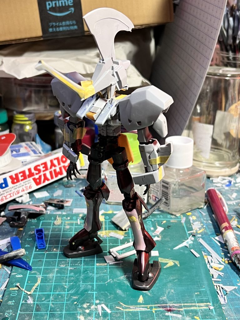 ケンドーナラザキ 2025.08/10更新 HG百式 264 18 いいねしたモデラー(18) 0 作品を共有 制作中のHG百式ベース、レッドミラージュの経過報告です。 前回からの変更点はツノの作り直しと、肩の関節位置変更と延長です。 写真2、3枚目 ツノの貧弱さが気になっていたのでバージョン2を作りました。プラ版で骨組みを作り、パテで肉盛りし表面処理をして完成です。 横顔は大分本家に近付いた気がします。 写真4、5枚目 肩幅の狭さと関節位置が気になったので弄りました。バイアランやハイゴックみたいになりましたがこれで良しとします😅 何とか八月中に上半身を完成させたいです❗️ 制作中 コメント コメントをして応援しよう コメントにはログインが必要です ケンドーナラザキ プラモ作りが趣味です。必殺シリーズは仕置屋稼業が最高傑作だと思います。 12 HG ブルーフレームセカンドL HGのアストレイブルーフレームセカンドLを制作しました!こだ… 15 HGアストレイGF天ミナ 武装追加版 HGのガンダムアストレイゴールドフレーム天ミナをメタルビルド… 16 HGUC 強化型ZZガンダム HGUCのZZを強化型仕様に改造しました! よろしければご覧… 10 HG百式ベース L.E.D.ミラージュ HGのリバイブ百式をベースにファイブスター物語のレッドミラー… ケンドーナラザキさんのページ この作品をお薦め作品に設定する Please login to update your profile! Please login to update your profile! Please login to update your profile! Please login to update your profile!