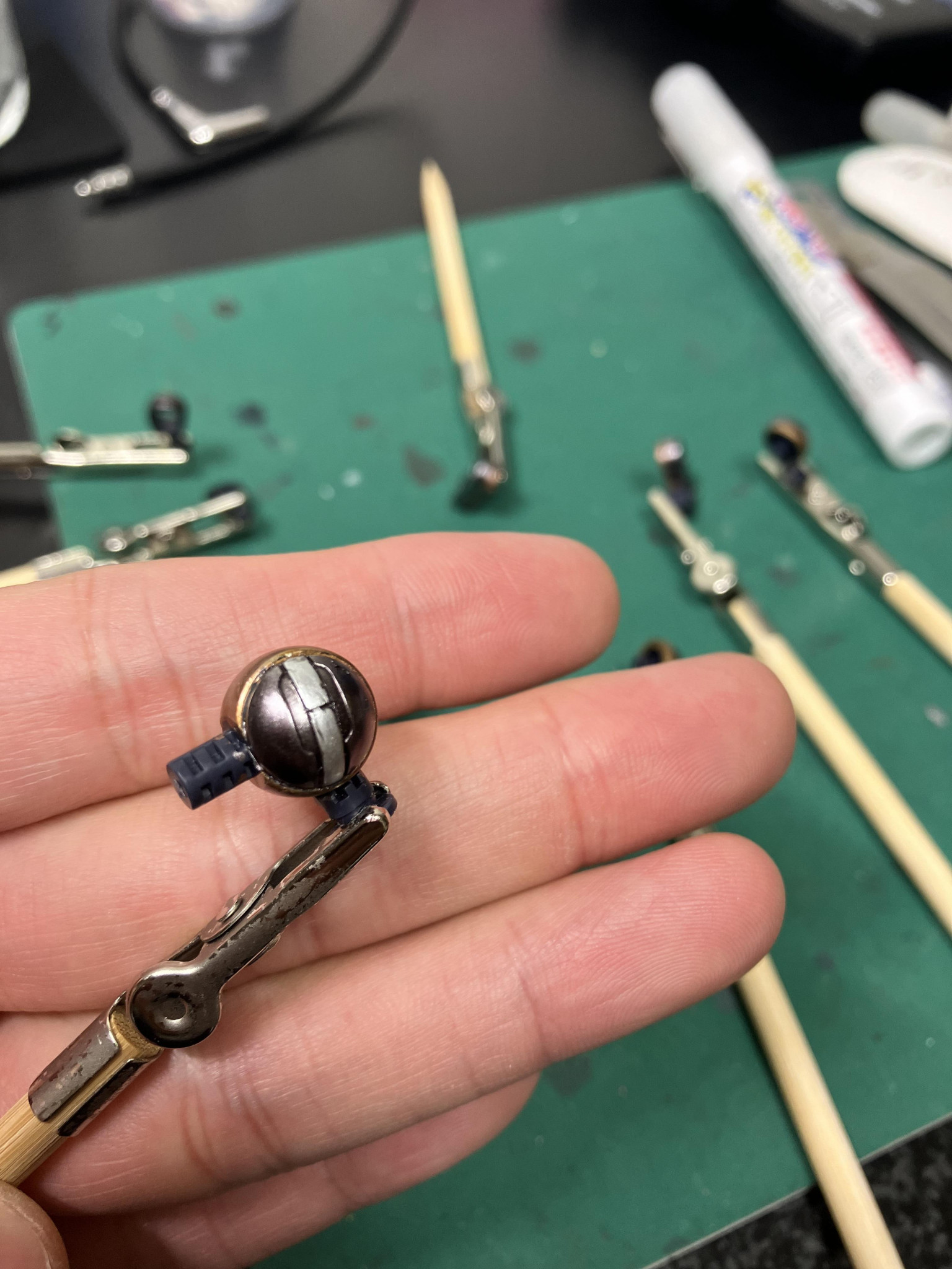 新しいモデルは関節軸にもディテールがあるので、メタリック塗装、わかります~、塗っちゃいますよね😆。