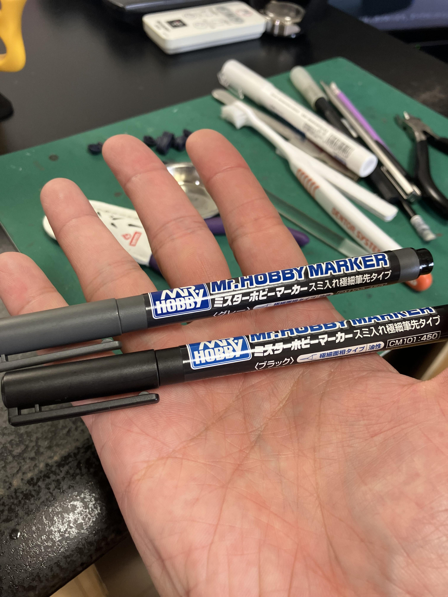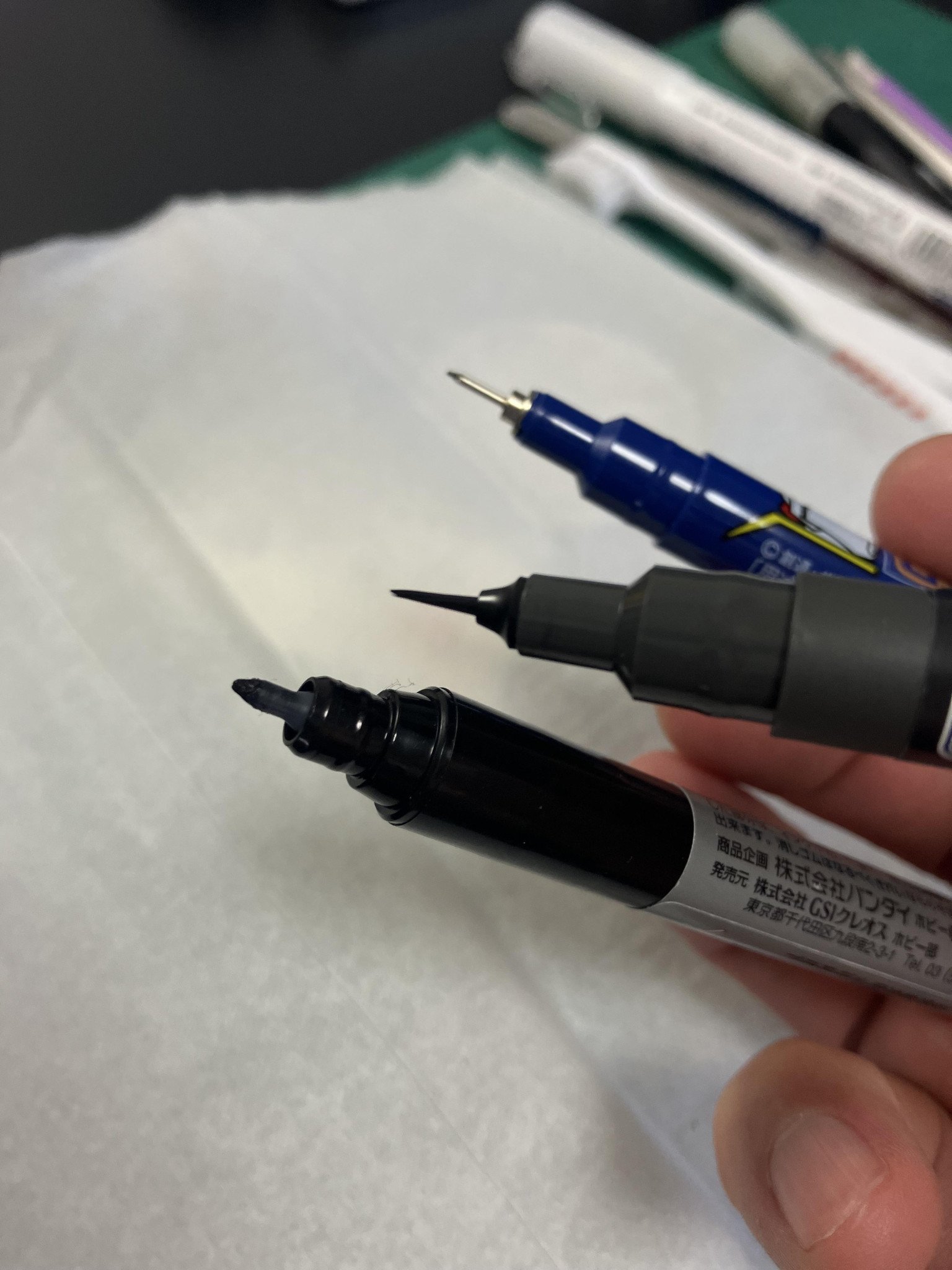私、ガンダムマーカーの筆、ペン、流し込み3種類持ってますが、ほぼペンを使ってます😄。