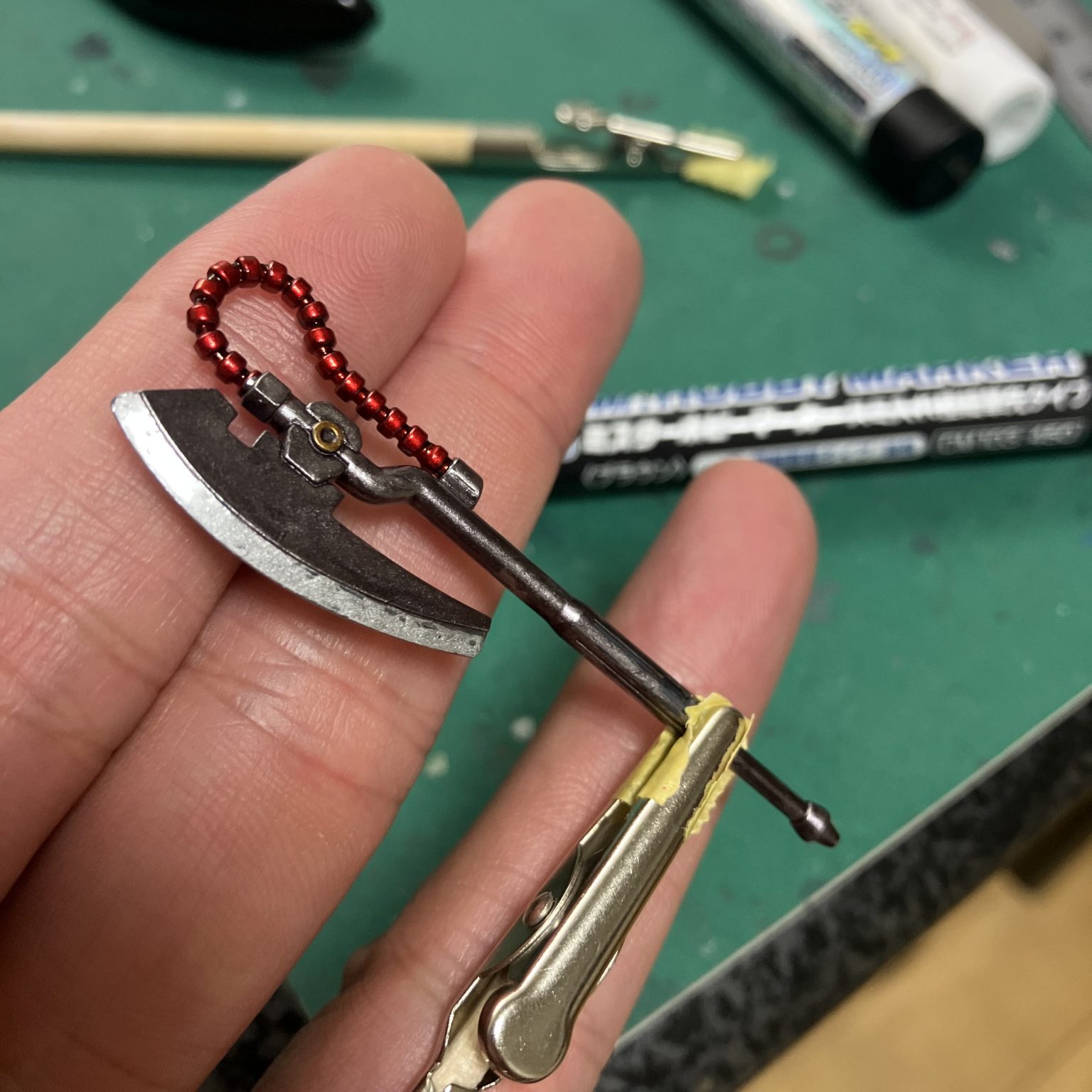 マスキングで保護してる😙真似しよ。何気アックスの塗り分け細かいなぁ中心のゴールド塗装とか、こだわりで時間かかってるぅ〜👍👍