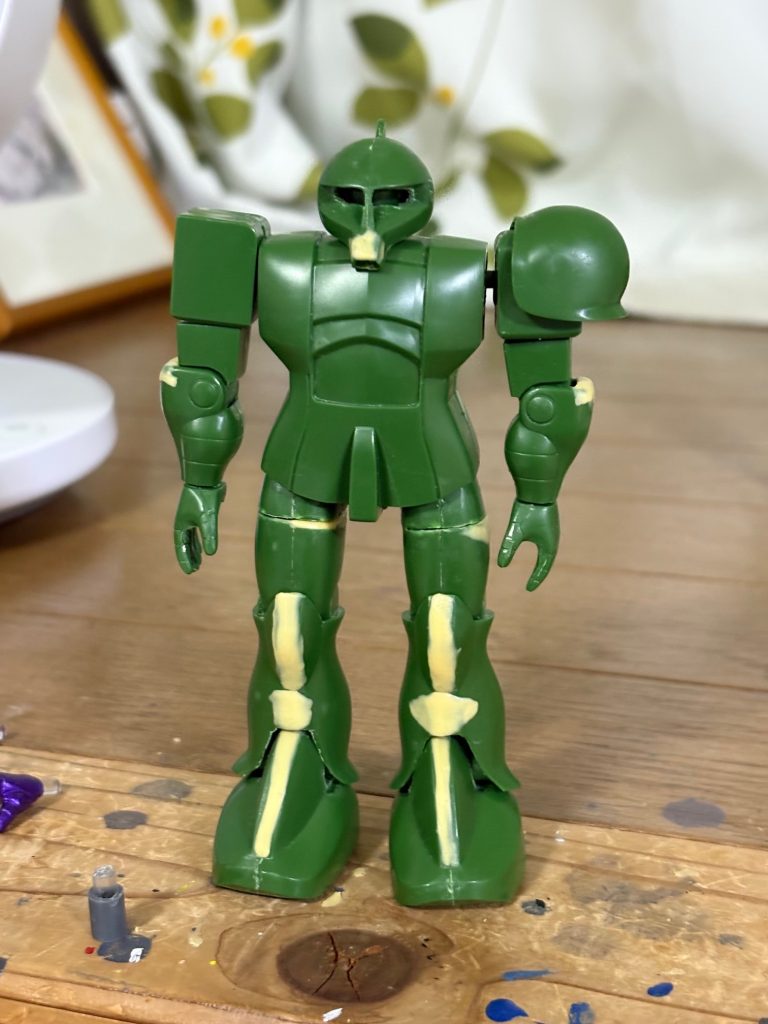 G-spark 2025.08/27更新 旧ザク完成まであと少し。 32 23 いいねしたモデラー(23) 0 作品を共有 ひと通り旧ザクの改造が完了。前回のノウハウを活かして胴体部分にジョイントをつなぐ骨組みを作ってみた。 さらに胴体の装甲をパージできるようにジョイントを新造し、塗装しやすくした。 ふう、あと少しだな(zaku-kao4) 制作中 旧ザク MS-05 ベストメカコレクション 旧キット改造 コメント コメントをして応援しよう コメントにはログインが必要です G-spark 幼稚園の頃に親と一緒にファーストガンダムを見てガンダムにはまり、5歳の頃にガンプラデビューしたガノタです。ガンダム以外にもトランスフォーマー(G1とビーストウォーズメイン)や鉄人28号、あぶない刑事、ゴジラ、仮面ライダー、ウルトラマン、特攻野郎Aチームが好きな雑食系ヲタです。 今でもファーストとBB戦士を中心にガンプラを組み立てては改造してます‼皆さん、よろしくお願いします。 G-sparkさんがお薦めする作品 EGプロトタイプガンダムfeat.あぶない刑事 ROBOT魂リペイント 赤いガンダム ~あぶ刑事ガンダムVe… EG G-3ガンダム YUJI's CUSTOM EGガンダム セイラ・マス専用機 8 我が家のドムたち。 タイトルの通り今年は色々なタイプのドムを投稿したので、あらた… 6 ガンダムと雪。 今日は小生の住む地域でも雪が降ったので、久々の野外撮影を行っ… 12 【リバイバル版改造】RX-78-2ガンダム ハイパー化カラー… クリスマス投稿2回目は、「ハイパー化ガンダムその2」である。… 8 【武者頑駄無プチ改造】足軽璽武(RGM-79 GM) 今回は武者頑駄無をプチ改造して「足軽GM」にしてみた。 5年… G-sparkさんのページ この作品をお薦め作品に設定する Please login to update your profile! Please login to update your profile! Please login to update your profile! Please login to update your profile!