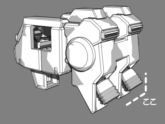 左右スラスターケース外殻下端。パワードジムでは外開き