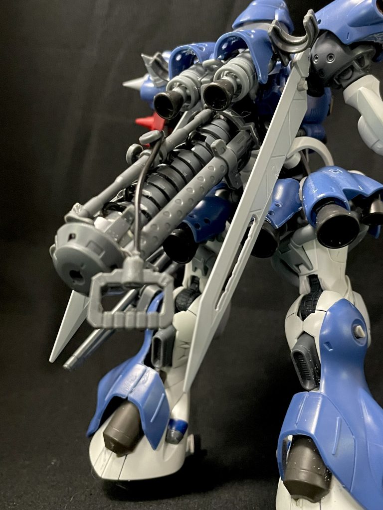 最初はギャン派生のケンプファーなのでシールド装備するため、シールド内に格納して携行しようと思いましたが、【お花みたいでダサくてデカい」】ので、ボツ!