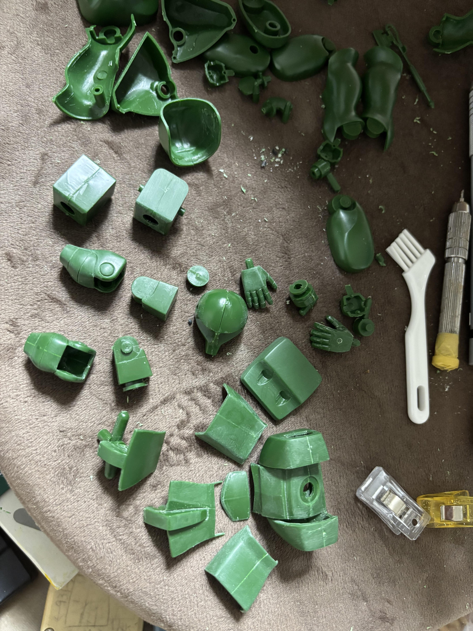 あれっくす 2025.09/18更新 旧ザク 関節拡張 ③「旧キット 旧ザク 関節拡張 + α」制作中 24 10 いいねしたモデラー(10) 0 作品を共有 各パーツ 筋彫り 切って 関節 入る 様に 加工 胴 から 腕 に 牛歩(zaku-kao8) 制作中 前へ 目次 次へ コメント コメントをして応援しよう コメントにはログインが必要です あれっくす ハロ好き なら Vガンダム を 操作する健気なハロ を 知らない のは 正直 もったいない、もったいない。。。(爺の特攻もある)😅 やっと涼しくなってきましたね(夜風が) 旧キット 関節拡張中…^_^; 秋の気温25度ランナーパテ 厚塗り3ミリが8時間乾燥するので 冬場に作業するのがアホらしくなりました😓 接着剤の匂いも速乾する時に消えている。。。 故に加工しまくっているので (完成しませんね) エルピー・プル最終ステージ セリアドール改修(中難易度) 初投稿からの流れで ずっと複数体改修中。。。 フォローして頂いて構いません😆 推しは推せる時に推せ (ガンプラは作れる時に作れ) 当時SDガンダムガシャポンワールドを お小遣いで ぶん回す子供(今も!?) 小5ガンプラ世代 VGでガンダム卒業出来なく成りました 😅 富野節大好き 基本は初代原理主義者です 子育て卒でようやっと隙間時間に 制作堪能中😁😁😁 単にSDガンダムが好きなやつです (と言っても外伝等の知識は無く狂四郎しか知りませんが) やりたかったSDガンダムを好きな形にして 投稿しております。 制作途中投稿申し訳無いと感じます。 mercar i 出品中 検索 #Birdcallsparrow から アカウント名 オセロ を ご覧下さい。 (バードコールが制作の資金です) メルカリで SDガンダムカードダス本弾1〜8 お求めの方は是非 アカウント名 ねん 様です (探せない方はオセロからフォロー内に) 開始日 2024/10/20 ガンダム以外の創作を アソビーコムで投稿中 https://app.arthobycomm.net/mypage あれっくすさんがお薦めする作品 関節拡張 ザクくん 旧ザク 関節拡張 ① あれ。。。ランドセルくっついてるよね?… 夢の関節拡張 翔べ! 俺たちのガンダム 中編 🤤 SD ヴィクトリー・トゥ ガンダム 平面 半立体 ドライブラ… 6 リックドム ツヴァイ 素組み (人生初完成品 既に小破) 閲覧有難う御座います!(*´꒳`*) 旧キット… 7 RX78-2 初代 MG 素組み え。。。 今更 ながら &nb… 4 そうだ!アッガイに乗ろう😁 ミク 「パワードスーツ•アッガ イ偵察隊出ます‼️」 2 ガデム も 乗ってた 旧ザク ^ ^ 兵士「あれ、旧ザクだよな。。。」 あれっくすさんのページ