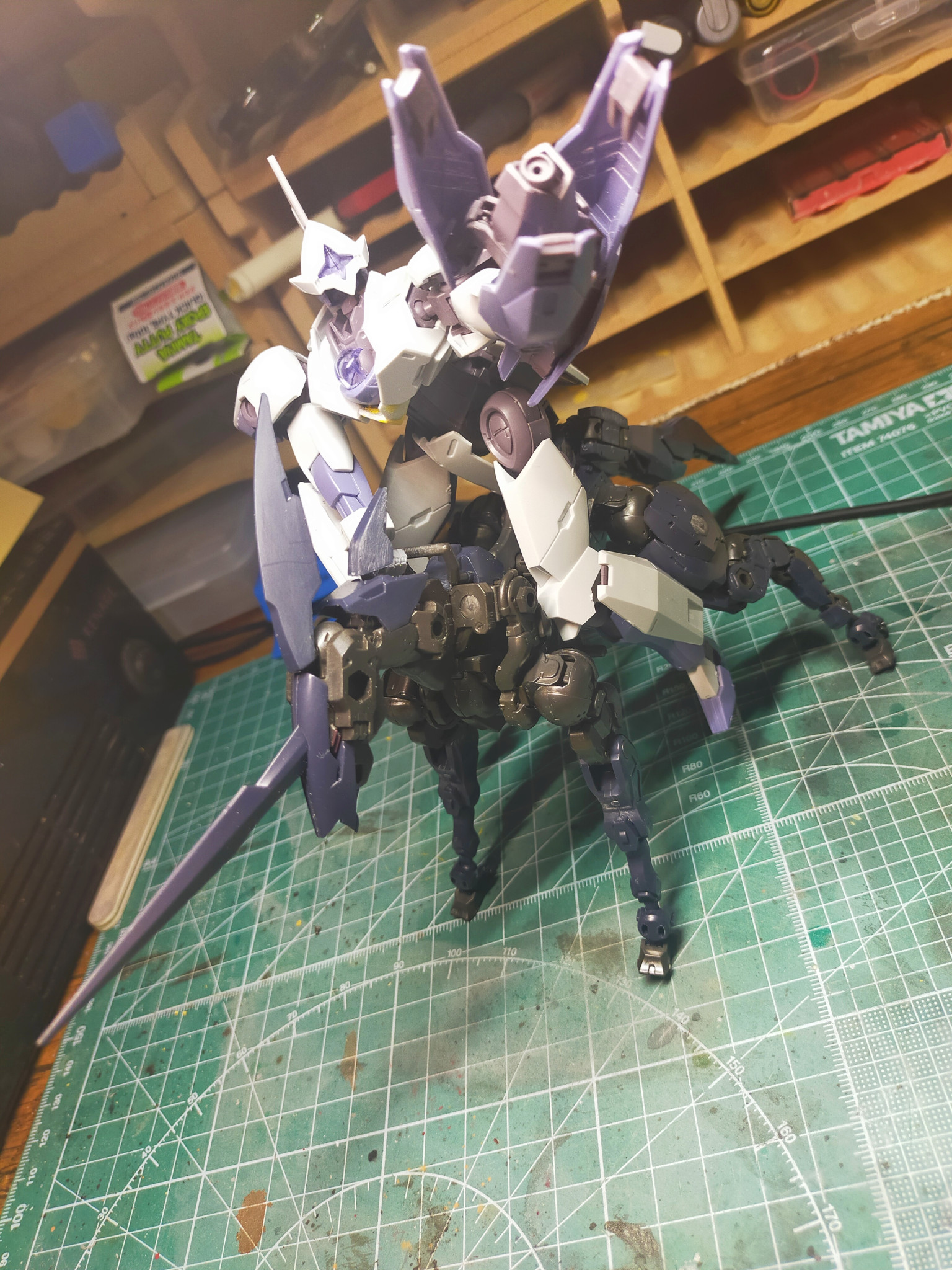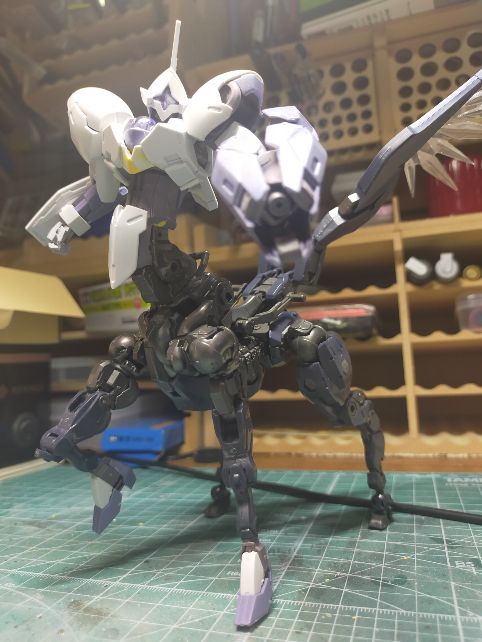 boku 2025.09/18更新 ミカエリス① 32 7 いいねしたモデラー(7) 0 作品を共有 不遇機ミカエリスとジークスプリンガーをミキシング “ミオリネだけのプリンス(王子様)になりたかったシャディク“をイメージして作成 ランスを持たせたい都合、腕を左右入れ替え ジークスプリンガー( 馬)の首とミカエリスの腹部を繋いでケンタウルスにしている そのままだと下半身が華奢だったので、ジャンクパーツやコード類を足してバランスを取っている 制作中 ミカエリス 水星の魔女 目次 完成作品 次へ 2025年 09月 18日 〜 2025年 10月 05日 S 不遇機ミカエリスとジークスプリンガーをミキシング“ミオリネだけのプリンス(王子様[…] 2025年09月18日 木曜日 2 ミカエリス改修進捗ランスを突き上げるポーズが取れるように首と手首を調整首はボール[…] 2025年09月24日 水曜日 3 首筋やら足首やらに血管に見立てた配線を配置ついでにモノアイを単眼にして電飾も仕込[…] 2025年09月29日 月曜日 G ミカエリス 2025年10月05日 日曜日 コメント コメントをして応援しよう コメントにはログインが必要です boku ガンプラ中心に作っています 作業速度は激遅 1体完成するのに数ヶ月掛かります 8 ミカエリス ミカエリスをミキシングし、ケンタウルスに 堕ちた白馬の王子様… 9 シャア専用ザクチョコケース かつて宇宙世紀と呼ばれた時代が在った⋯と、放棄された研究施設… 9 シュバルゼッテ 兄弟喧嘩が最悪の結末を迎えた”if”… 9 ジ・O オリジナリティを発揮せず設定に沿った機体を作ろうと制作 コロ… bokuさんのページ