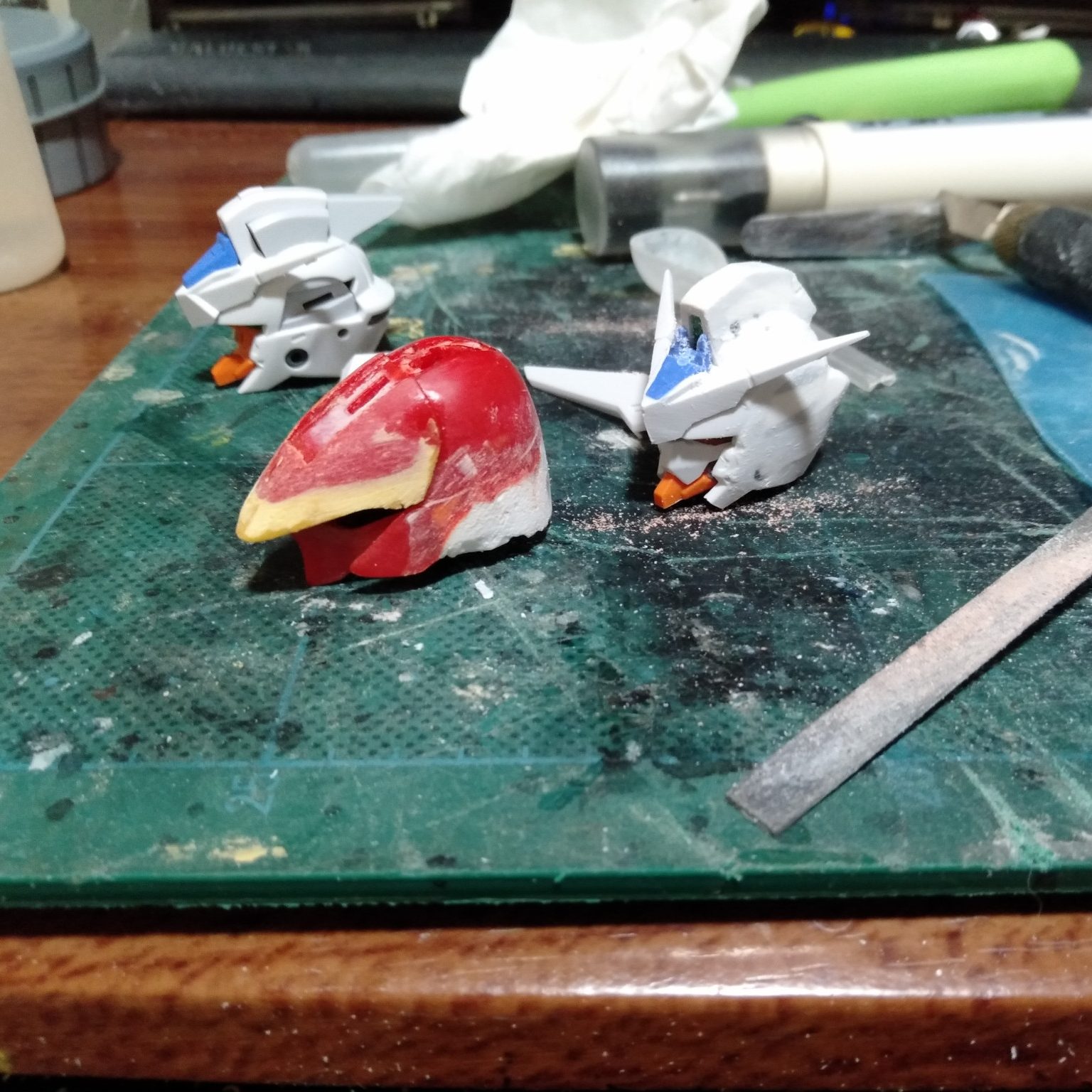 ここ半年は、プレバンと中国模型業界の模型を買いあさってます(笑)。今月はRE1/100デナン・ゲーを初回1個、第2次も惜しくも1個入手したんで、今月来るMGガンダムMK‐Ⅳトータル4個目が揃い、ワクワクしながらMGガンダムVer.2.0を3個を仕上げて「改造してぇ~」って生ったので、製作開始‼。1/100ムーンな中国製を2個購入して積んでたんで、さっそく開封して頭部から改造開始しました。”バルギル”は旧MGサザビー(ジャンク2個)から前持ち主が、改造仕掛けで止めてた奴を使いました。もう一つはムーンなヘッドから改造中。久々の中改造に心が躍るわwww