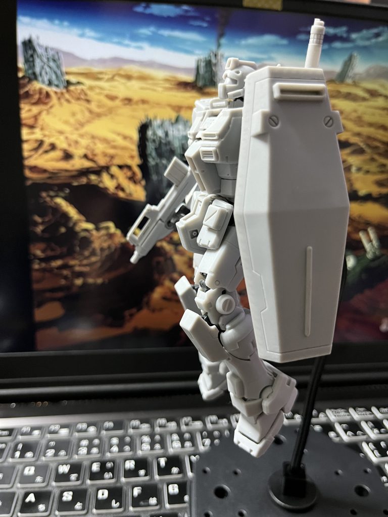 そもそもHGしか存在しないパワードジムをRGモデルにしている事、そして市販のそれと見比べると分かりますが、各パーツが見事に洗練された再設計が施されていて、かつミリタリー性も増加している事。