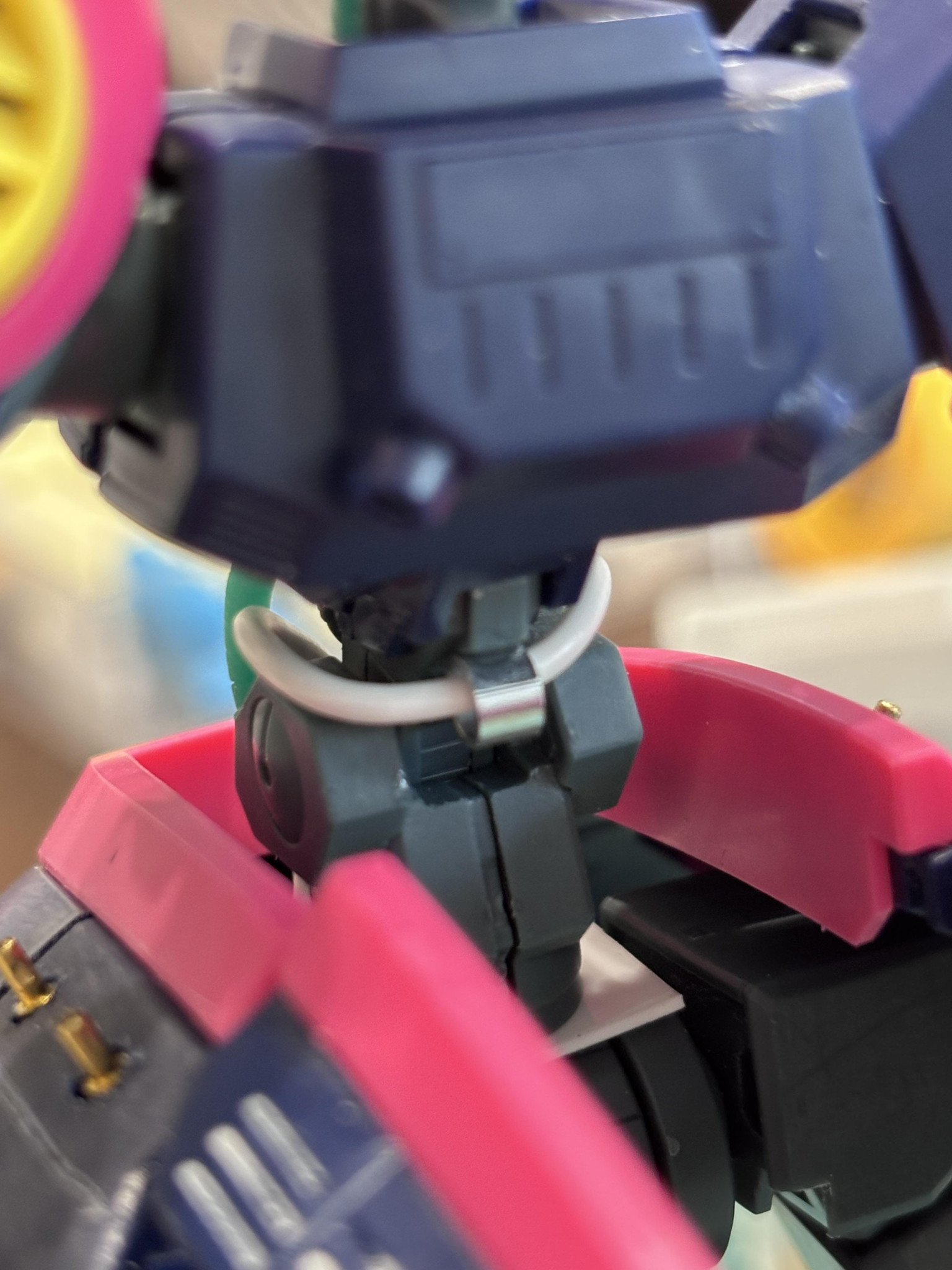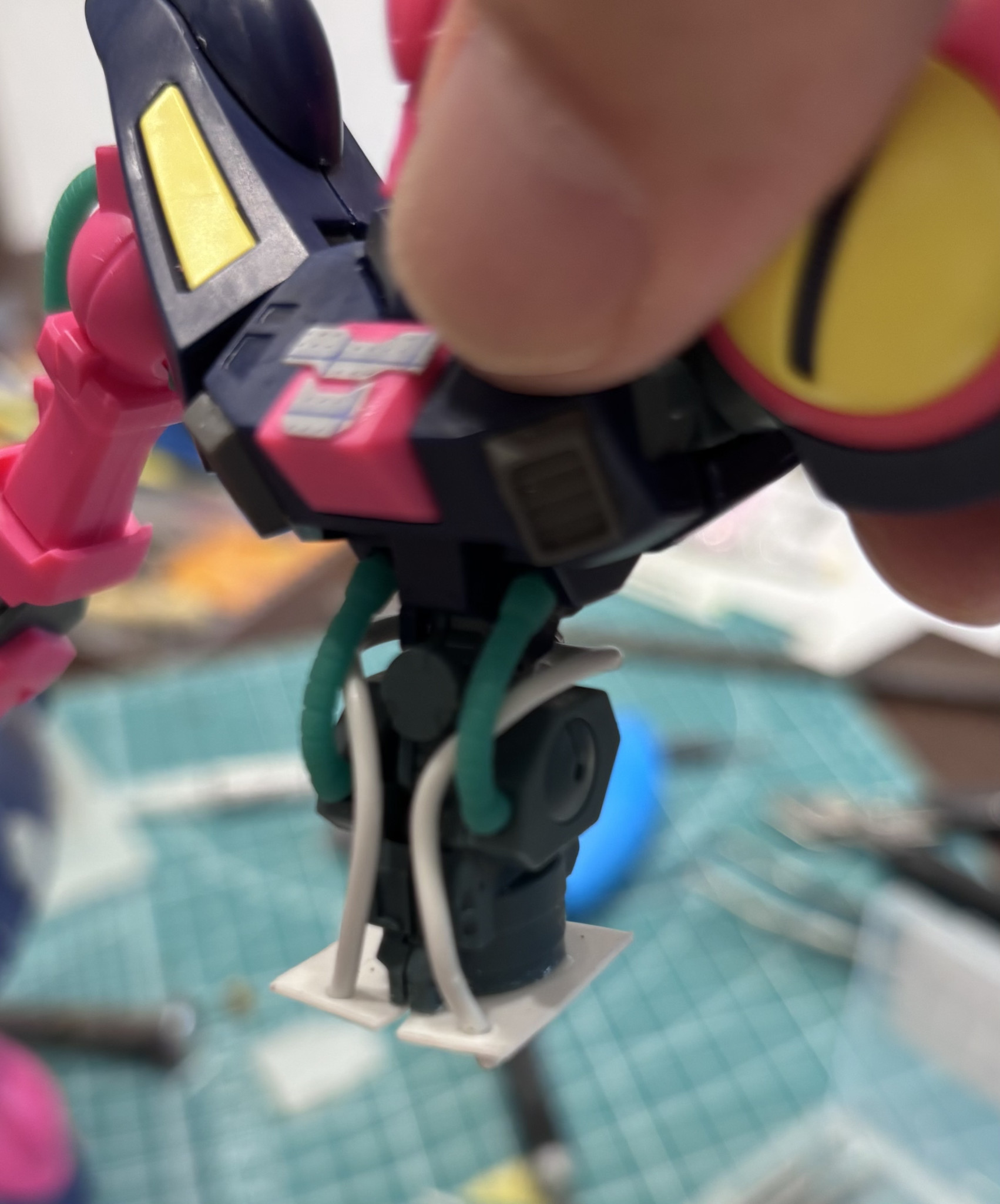 パーツ細く稼働するパーツ同士でパイプを繋ぐのは自分の技量では難しいと思い、スカート内に潜り込ませることにしました。