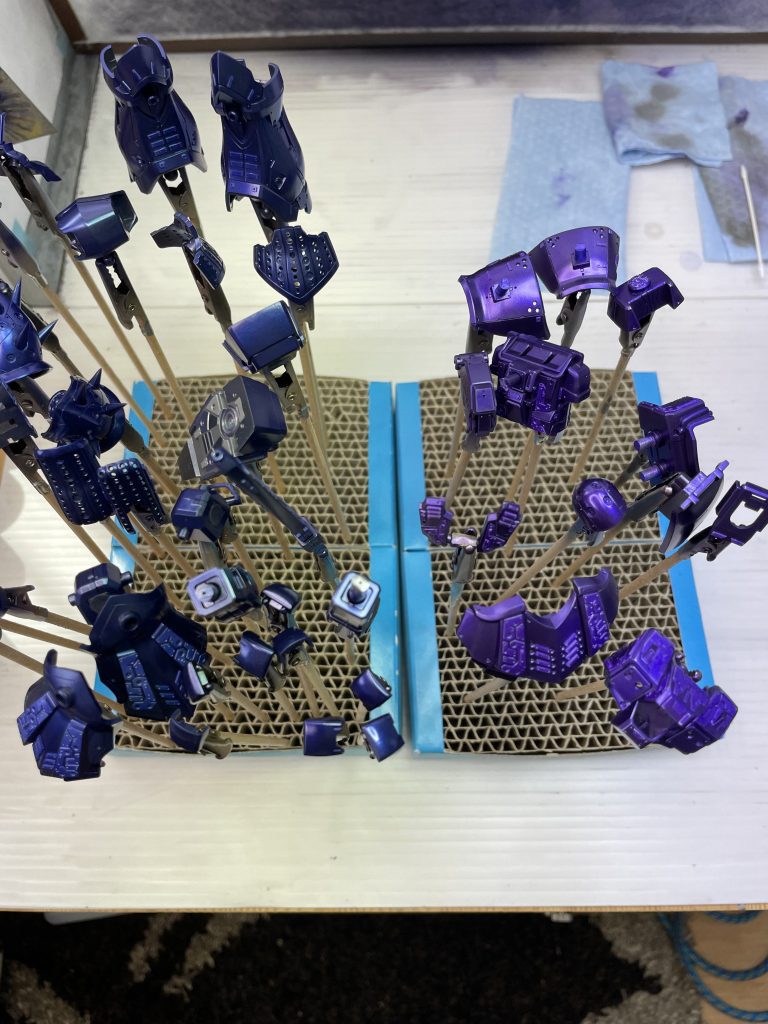 takiyama0… 2025.09/21更新 HGUCイフリート・ナハト 16 29 いいねしたモデラー(29) 4 作品を共有 HGUC イフリート・ナハト上塗りの2色目吹き付けました。かなりディープな藍色(純色バイオレット4に純色グリーン1クリアホワイト0.5)良さげな感じです。ツートン仕上げですこの後、エッジを下塗りのパールがチラ見えまでヤスって粉物がのりやすくします。 制作中 イフリートナハト イフリート イフリート・ナハト HGUC コメント コメントをして応援しよう コメントにはログインが必要です 猩々(しょうじょう) 4か月前 美しい‼️ 藍色って、バイオレットとグリーンで出来るのですか😳ひとつ賢くなりました😊 takiyama08g 4か月前 猩々さん、こんちは狙ったのは、紫の青強めの暗め。吹き終わって藍色だよねってなりましたねパール下地じゃなかったら、ただの暗い青でしたね。 inagu 51 4か月前 しっとりと落ち着きのあるトーンがたまりません😸 下地のホワイトパールが生きてますね✨ takiyama08g 4か月前 inagu 51さん、こんちはパール下地に顔料系の隠蔽力なしがいい感じに偏光しますねキラキラ仕上げは当面これで行ってみようかと思っております。 takiyama08g 静岡からUPしてます。 三島も沼津もいい勝負の距離です。 定年からの再プラ活を楽しんでます。 ガンプラ、エアプレーンを中心に模活してます。 GUNSTA、MG(モデラーズギャラリー)へ作品を投稿しています。 FBのグループ:ガンプラ同盟PLUS+、ガンプラ同好会、大人だから作れるプラモデルの会へ、投稿しています。 覗いていただければ、幸いです。 takiyama08gさんがお薦めする作品 MS−07A 砂漠迷彩 HG フルアーマーガンダム RG ジオング エールストライク TYPE-J 8 HGUC イフリート・ナハト HGUC イフリート・ナハトALLエッジ強調、サフレスでパー… 13 HG エアリアル スコア6 HG エアリアル スコア6 ALLエッジ強調、ホワイト部成形… 11 ミラソウル社製フライトユニット ミラソウル社製フライトユニット完成UP 2025… 10 HG ジャイアント ガトリング etc. HG ジャイアント ガトリング etc.完成しました。HG … takiyama0…さんのページ この作品をお薦め作品に設定する Please login to update your profile! Please login to update your profile! Please login to update your profile! Please login to update your profile!