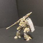 ポージングの改良、甲脚砲は右手部分が主砲なので基部だけ残して取りつけ、左手の装甲は少し形状は違えど大体こんな感じ。尻部分がディーゼルエンジンです。まだまだ機体も、周りの兵もやることが多い。