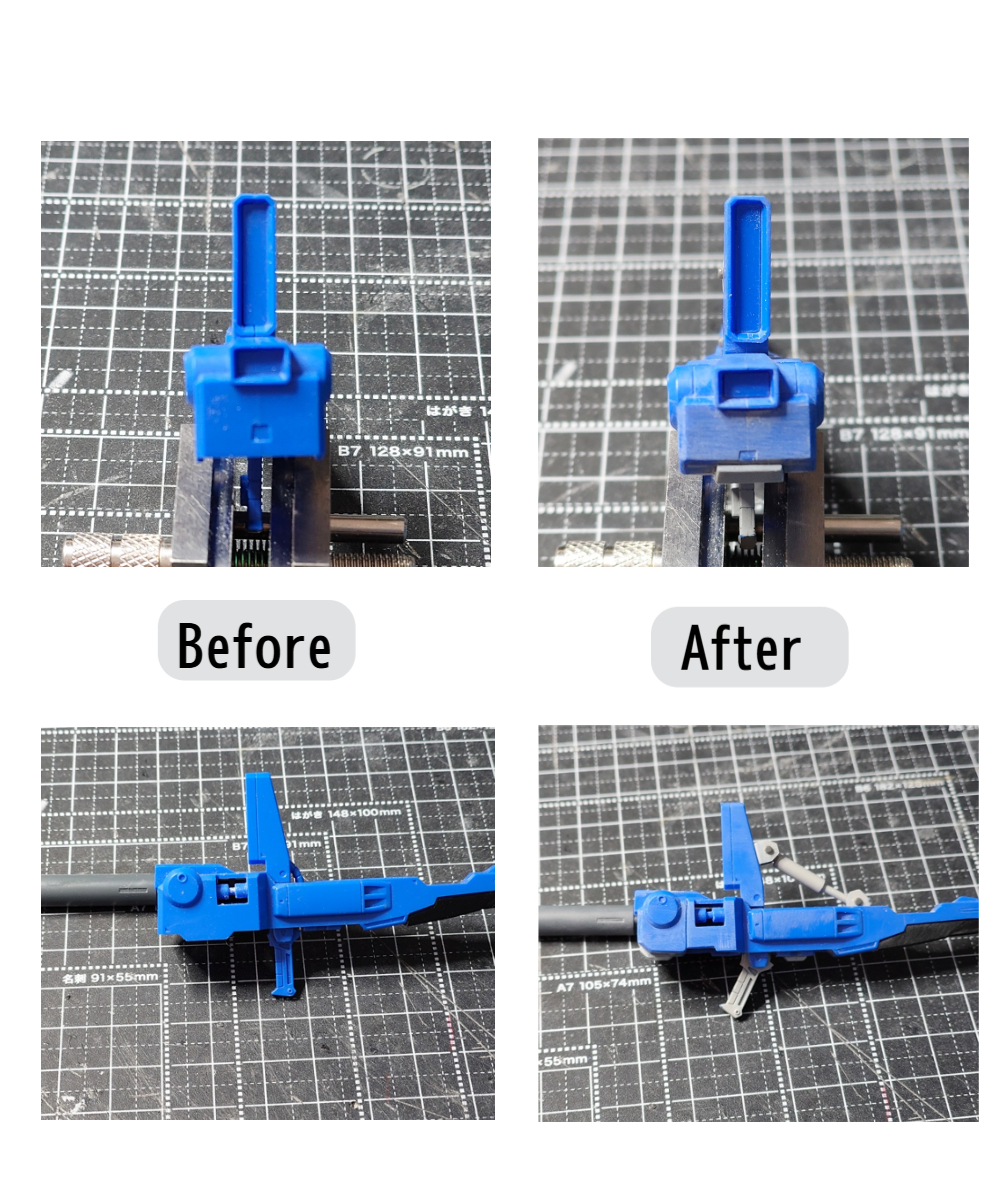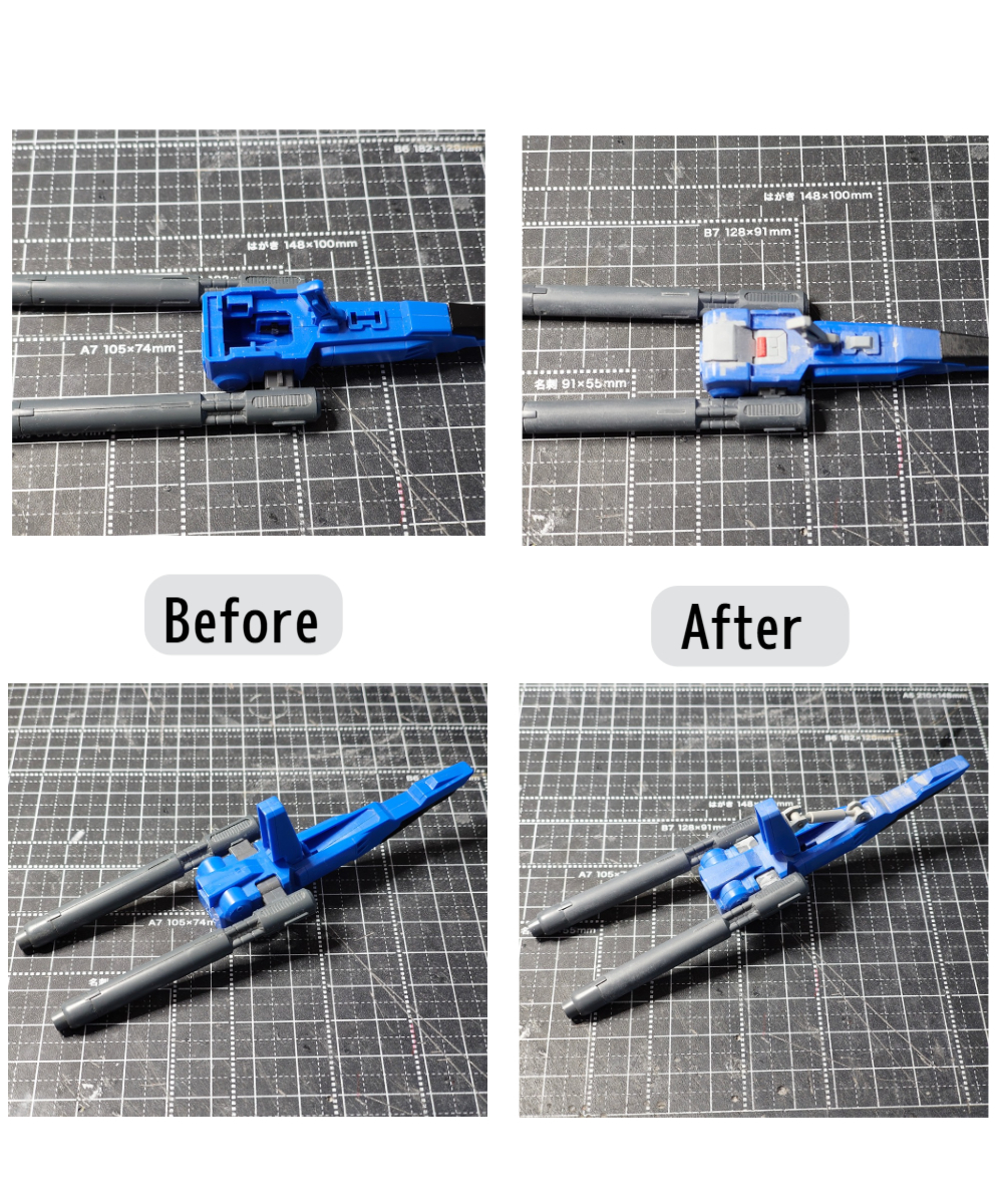 ver.Kaではライフルの正面部分が回転して変形に対応しているので、回転できるようなパーツ分割にあったモールド追加。