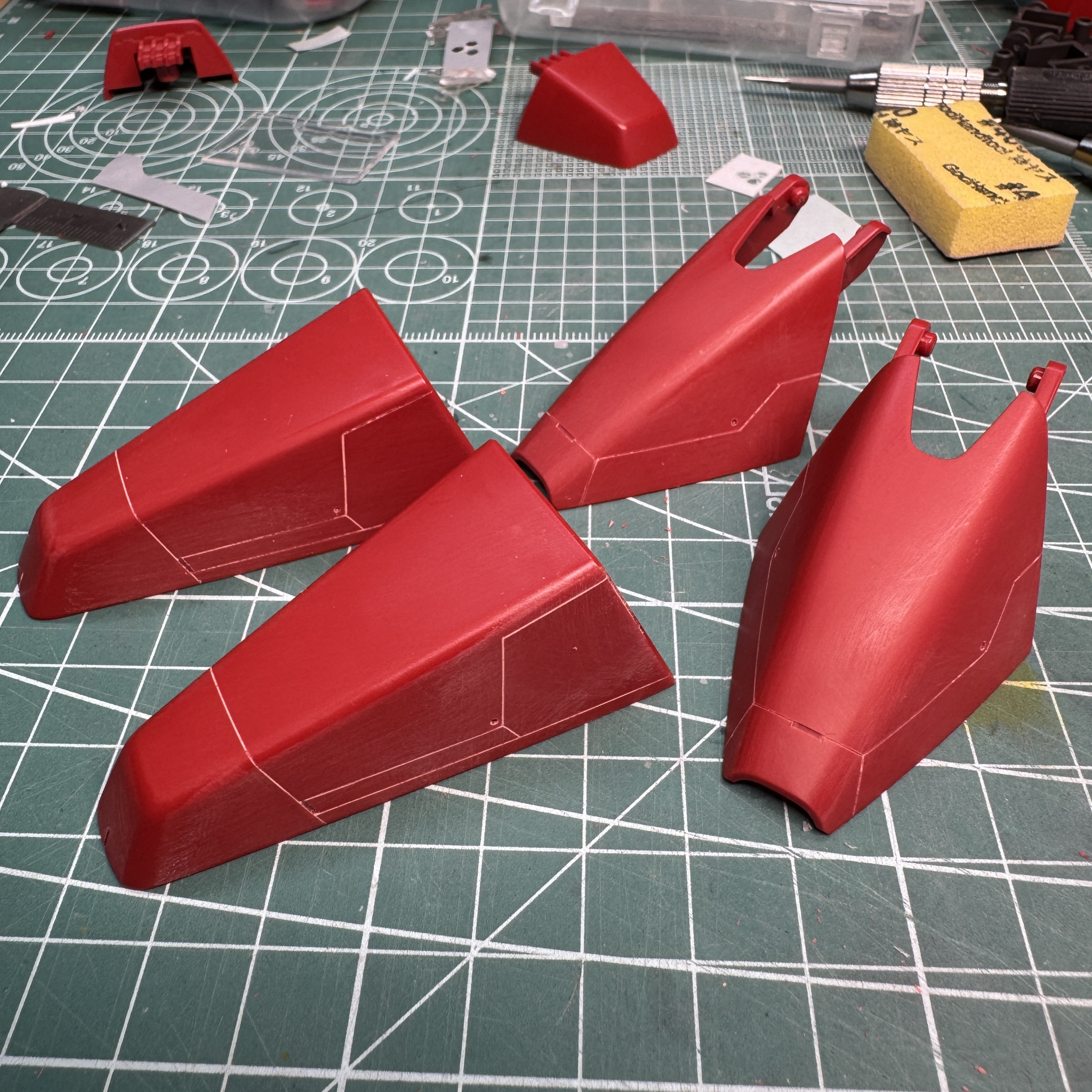 Mosu 2025.09/22更新 大進捗 24 16 いいねしたモデラー(16) 0 作品を共有 今日はかなり時間とれました!で、途中居眠りして起きたら予定と違う線書いてました笑 1箇所やってしまったらしょうがないと、諦めて全部そのままやりきりました! 制作中 コメント コメントをして応援しよう コメントにはログインが必要です Mosu だいたい年に1作のペースで制作。 300年くらい生きたら上手くなれる気がする。 息子と一緒に作れるようになるのが楽しみ。 でしたがポケモンとマイクラに全部もっていかれました。 いやポケカ普通に面白いんですが笑 家事育児でほぼ占拠された中、制作だけじゃなく何かやりたいな〜と漫然と画策中。 Mosuさんがお薦めする作品 ARZ-125 REHAIZE〈リハイゼ ティターンズ鹵獲仕… ARZ-125 RE-HAIZE【んどぱら屋さんガレージキッ… HAZE’N-THREY II RAH <MS形態> +拡張… Hi-ν GUNDAM +ハイパー・メガ・バズーカ・ランチャ… 6 ORX-013 ガンダムMk-V 【オリジナルカラー】 今回は【悪役】をテーマに色選びとポージングにこだわりました。… 6 MG サザビー Ver.ka 何を思ったのか白く塗りたくなったサザビー。 なんか制作した物… 6 MG ヘイズル・ラー 第二形態 作り溜め作品です。 MGヘイズル改+フルドド2機で、ヘイズル… 5 GP04 ガーベラ RE 1/100 GP04 ガーベラです。 撮影機材引っ張り… Mosuさんのページ