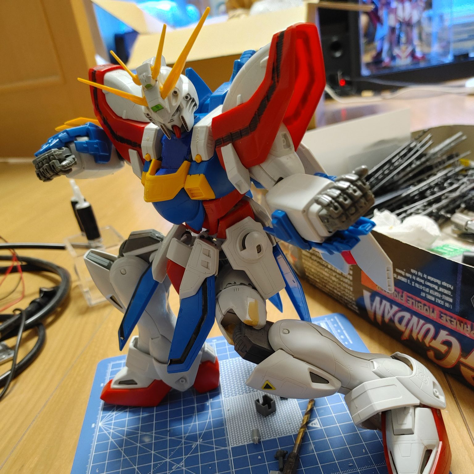 ラジヲマン 2025.09/23更新 HG-EXゴッドガンダム③ 32 10 いいねしたモデラー(10) 0 作品を共有 下半身の関節追加完了です(^-^) 股関節の軸移動と太股のロール軸、膝関節を後ろにずらして正座出来るようになりました。 ハイキックも出来ます(笑)バランス取れないので自立出来ませんが・・・(^^;) 次は腕の関節加工・追加に入ります。 制作中 機動武闘伝Gガンダム ゴッドガンダム キングオブハート HG-EX シャッフル同盟 コメント コメントをして応援しよう コメントにはログインが必要です ラジヲマン 40年ぶりのリターンです。老眼と眼精疲労との闘いでした(T_T) 4 シャッフルクラブガンダム(MA形態)の変形ギミック② 続きです(^-^) 9 シャッフルクラブガンダム(MA形態)の変形ギミック シャッフルクラブガンダムのMA形態の変形機構です。 6 シャッフルクラブガンダム モビルファイター、シャッフルクラブガンダム(クラブエース)を… 3 シャッフルハートガンダム(MA形態) シャッフルハートガンダムのMA形態です。 外装を全て外して組… ラジヲマンさんのページ