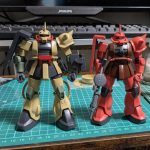 たとえばこれ、旧HGUCのザクⅡ。増殖力高めの個体です。私の手元でも気づけば赤緑あわせて4体ほどに増殖していました。