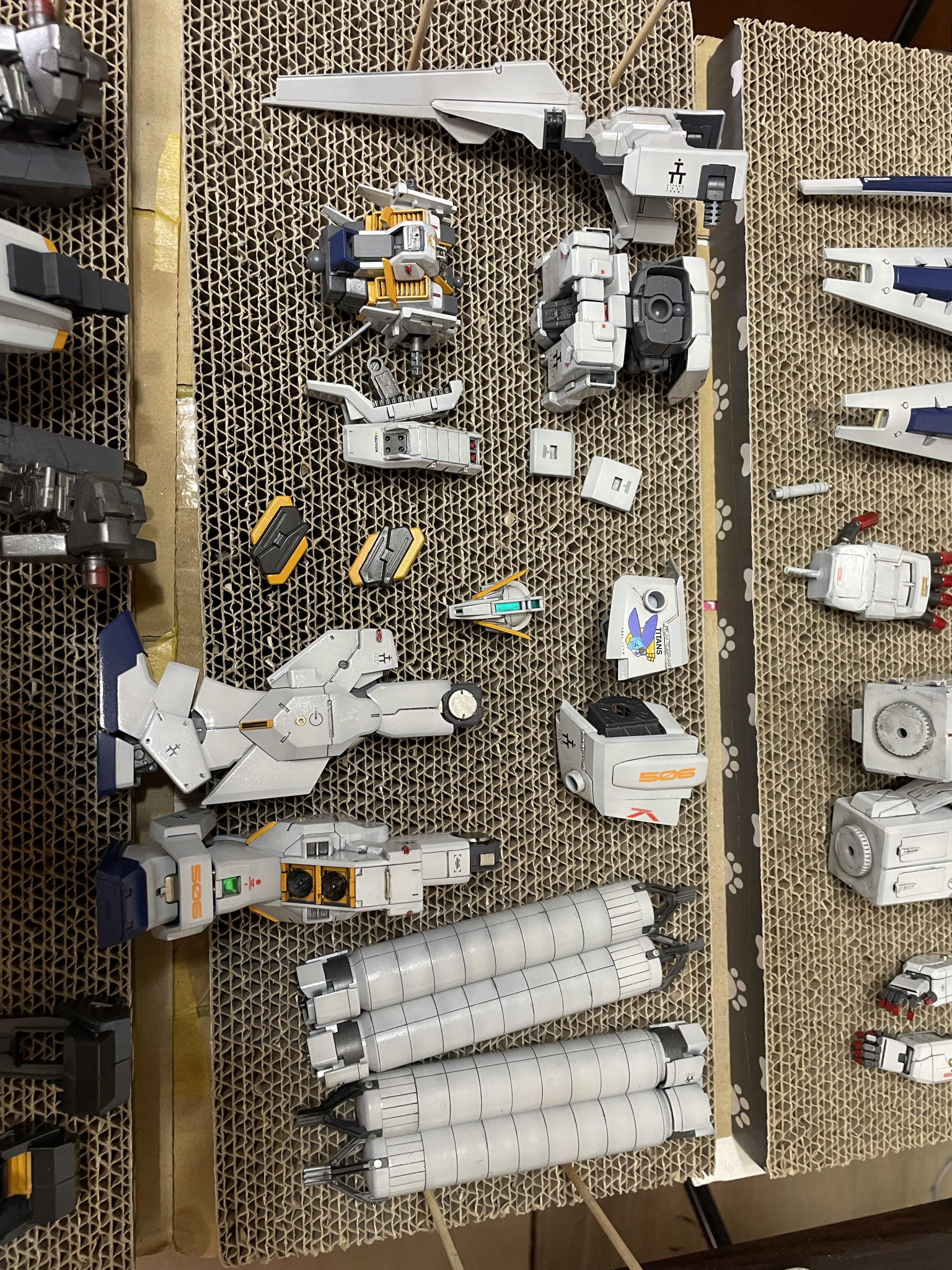 かまかま 2025.09/28更新 MGヘイズルなんちゃってアウスラでっちあげギガンティックアーム 8 8 いいねしたモデラー(8) 0 作品を共有 MGヘイズルをアウスラに!そしてでっちあげギガンティックアーム仕様にしようと思いたちやってきました。アドバンスドヘイズル、プリムローズ、フルドドを使用して、ギガンティックアームはでっちあげ!、フルドドⅡを作る技術も無いので、いろんなあまりパーツの合体ロボです。デカール貼り付けまできました。 制作中 コメント コメントをして応援しよう コメントにはログインが必要です かまかま 40年前の中学生の頃にガンプラに目覚め、途中、仕事が多忙になりかなりのブランクがありましたが、一昨年よりボチボチ復活しました。ブラックな仕事環境なため、制作スピードが極端に遅いので、一つ作るのに2〜3ヶ月かかります。スジボリがうまくなりたい今日この頃です。 5 ヘイズルなんちゃってアウスラでっちあげギガンティックアーム なかなか買えないヘイズルアウスラにイラついて、でっちあげまし… 5 TR-6バーザムⅡ レジオン鹵獲仕様オリジナルカラー 塗装をしようとしたら、赤が足りない!注文したらカード情報入力… 4 高機動型ゲルググ サイコザク風 ジョニーライデンゲルググをサイコザク風ということで、各所にバ… 5 TR-5フライルー・ギガンティックアーム 遅ればせながら、最近いろいろ再販されているA.O.ZのTR-… かまかまさんのページ