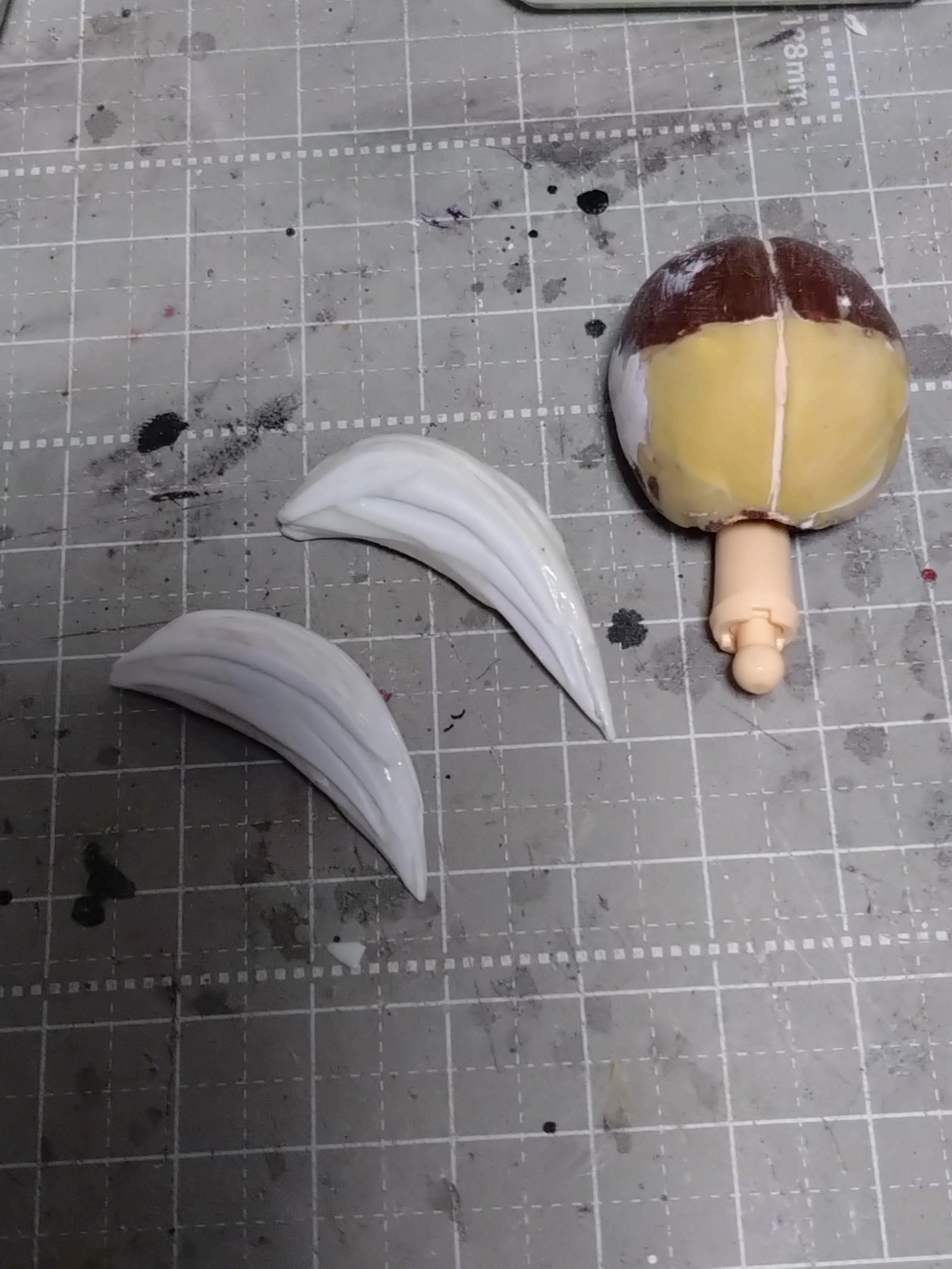 後頭部はパテ盛りして硬化前に真ん中に分け目のモールド入れて硬化後ヤスリでなじませました。