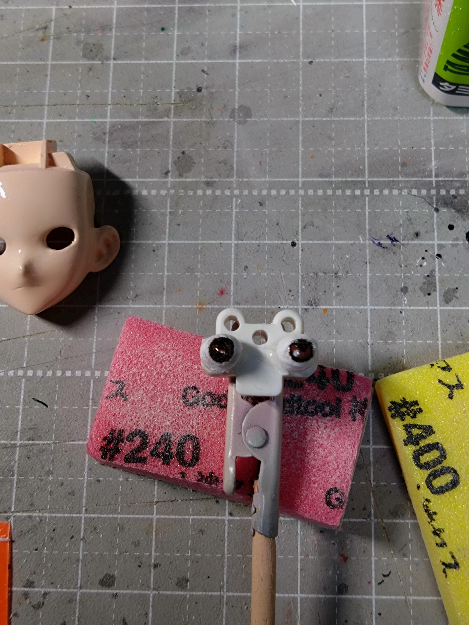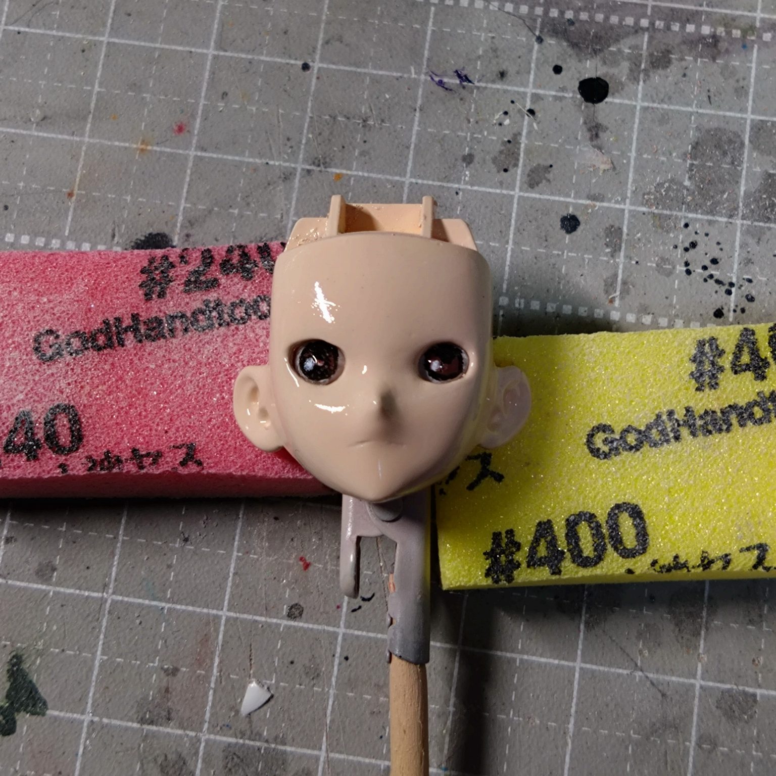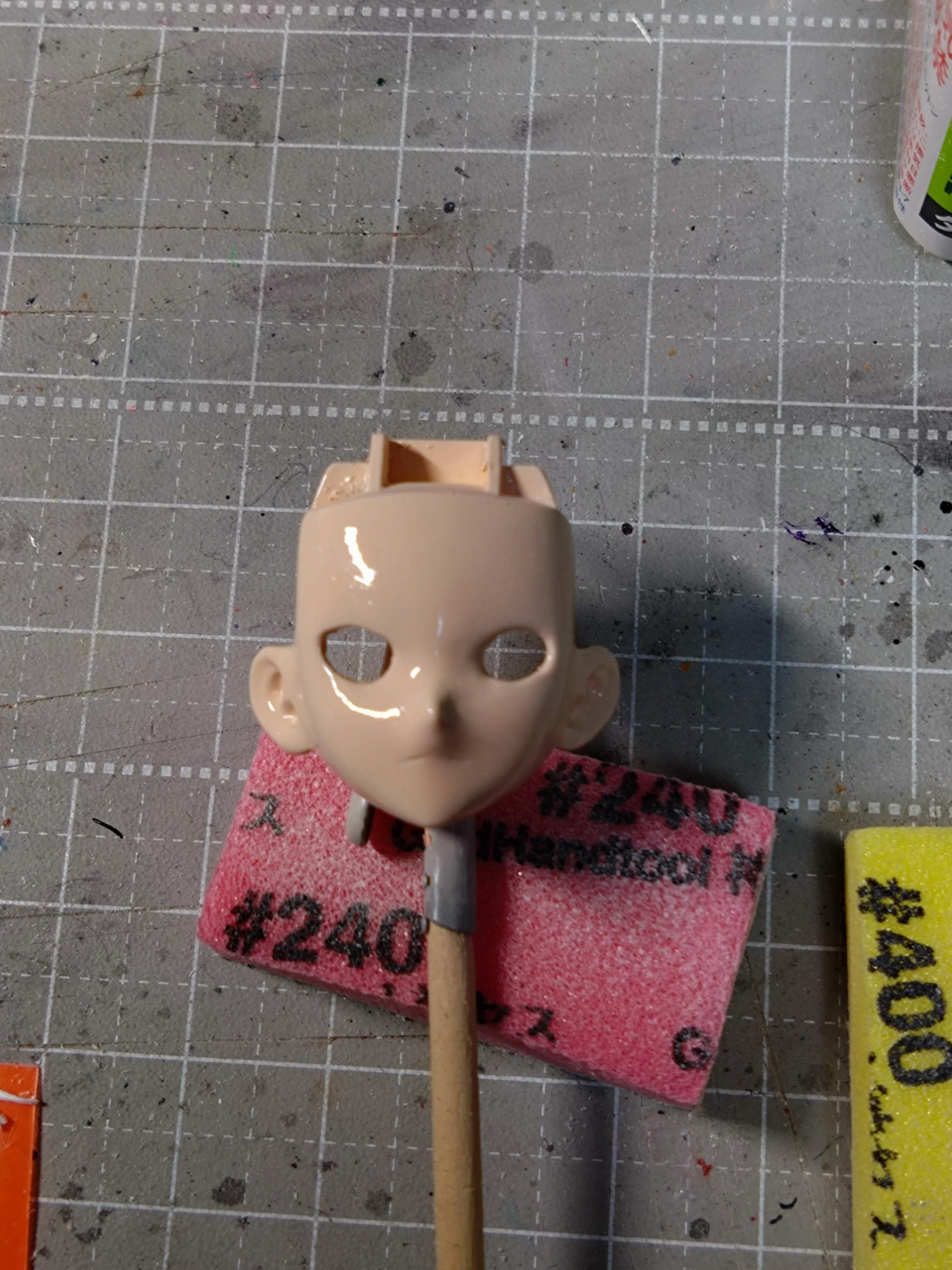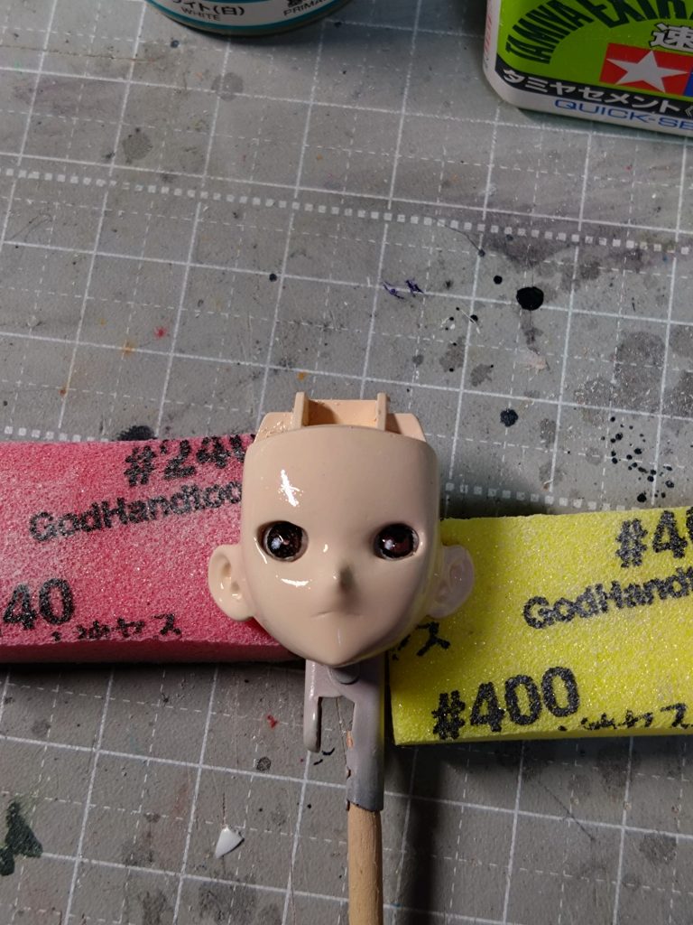 顔パーツはヤスリがけして筆塗り後もう一度ヤスリがけしてから肌色塗装。