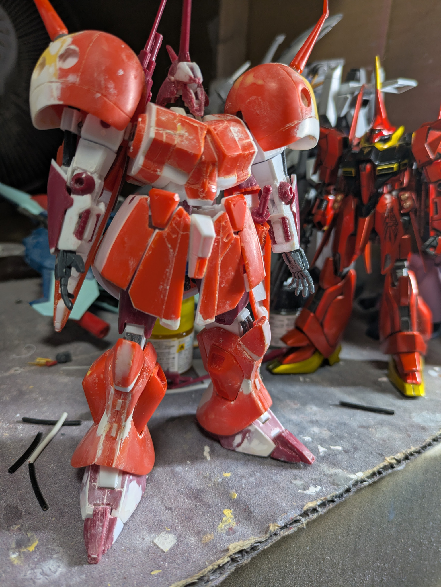 ヒロ@zz3471… 2025.09/28更新 旧キットRジャジャ 24 10 いいねしたモデラー(10) 1 作品を共有 腕のケーブルを再考した結果、塗装後の滑りなどを考慮して、スプリングに替えました。肩口の基部でスライドするようにして、肩アーマーのフレームを貫通させてスプリングの逃げを作りました。 これでやっと塗装に進めます。 塗装前にバランスをみるために完成形で撮影してみました。 塗装できたら投稿しますのでお楽しみに。 制作中 コメント コメントをして応援しよう コメントにはログインが必要です まお大佐 1週間前 コメント失礼します。お見事なプロポーション変更です。HGUCよりも旧キットの方がボリュームがあってアニメに近いと思うのですが、いかんせんRジャジャのデザイン自体が可動しにくいデザインなので、ここまで仕上げられるなんてスゴイなーと思います。塗装後の感性が楽しみです。 ヒロ@zz3471008027 50代です。 ヒロという名でエックスに投稿しています。 関節改造や完全変形への改造がメインで、デカールはあまり貼りません。 投稿基準は、改造したか、塗装したかで、素組みだけのはしない予定です。 12 HGUC FAZZ お久しぶりです。 Sガンダムの投稿からしばらく経ってしまいま… 17 HGUC Gクルーザー Gクルーザーを投稿します。 これでSガンダムの投稿は最後にな… 13 HGUC Ex-sガンダム Ex-sガンダムを投稿します。 15 HGUC Sガンダム Bst型 MS形態に続いて、Bst形態を投稿します。 写真はBstユニ… ヒロ@zz3471…さんのページ