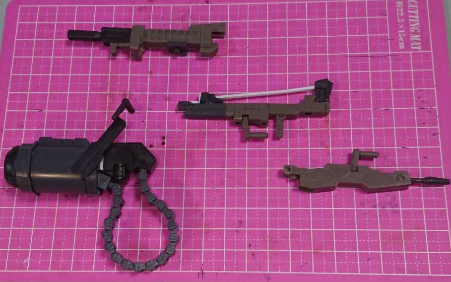 ビームライフル・ロングビームライフル・メガカノン・Iフィールドジェネレーター付き・換装モードの5形態に変更可能、ジェネレーターは壽屋さんのウェポンユニット30を加工して取り付け