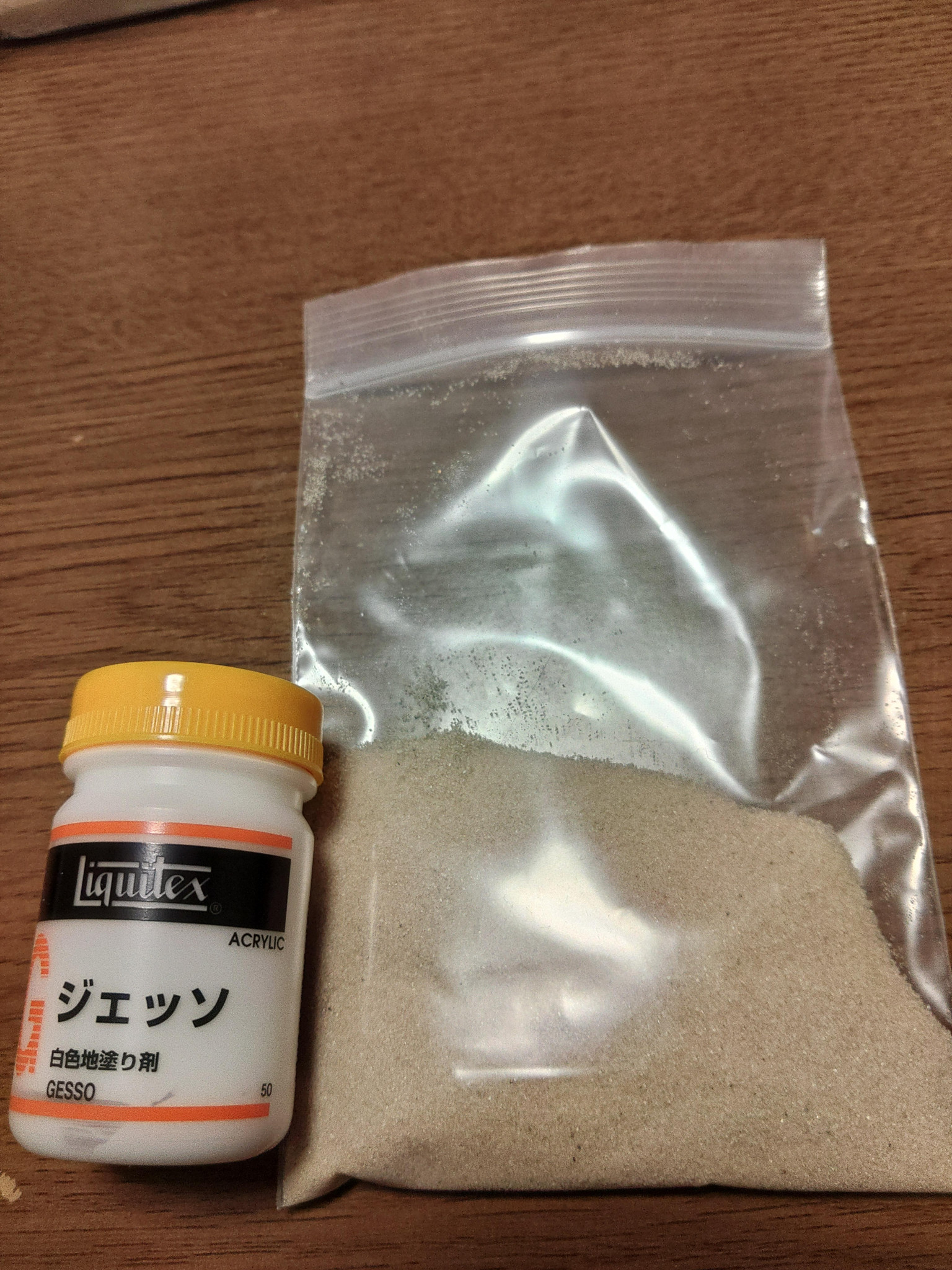ジオラマやヴィネットって初で、いろいろ材料あるんですね〜😙。よし、じゃあできるだけきれいそうな砂もらってきます。