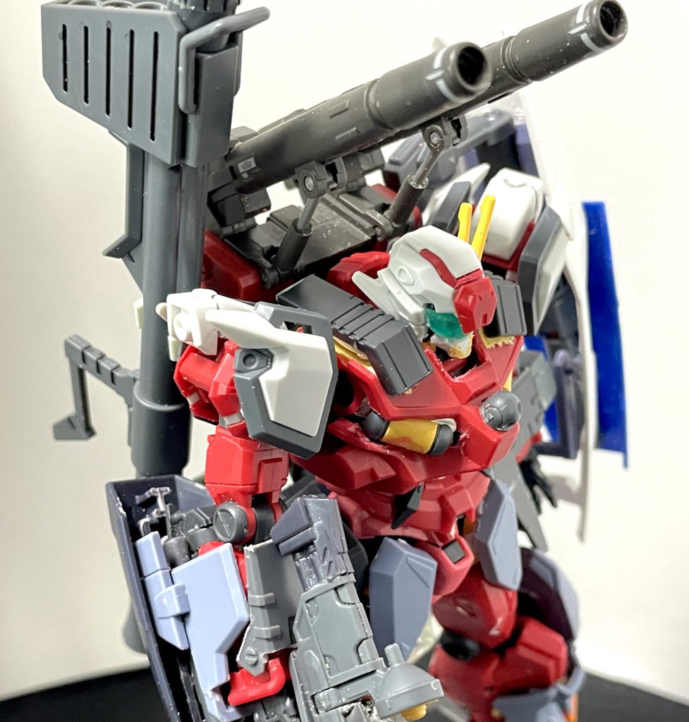 軽キャノンはGQガンダムより腕や脚が気持ち太くはなっていますが、ボディの大きさと比較するとボリューム不足に思えた為、デュエルブリッツのアーマー部分をミキシングしてマッシブになればいいなと作成開始しました。