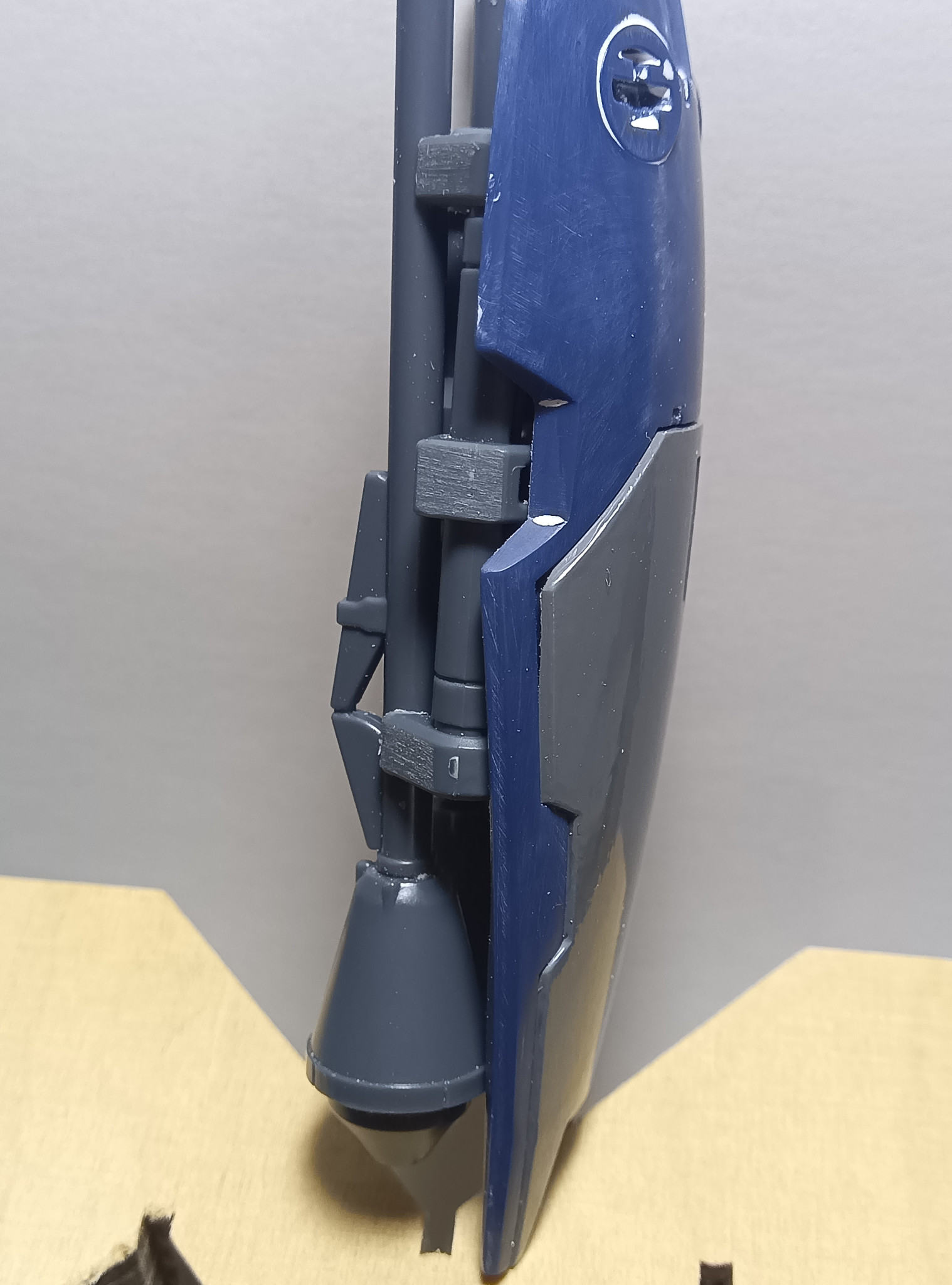 取り付け基部はバンダイのオプションパーツセットのガトリング砲に付いてくるパーツなんですが、この基部パーツは加工無しで取り付け出来ました