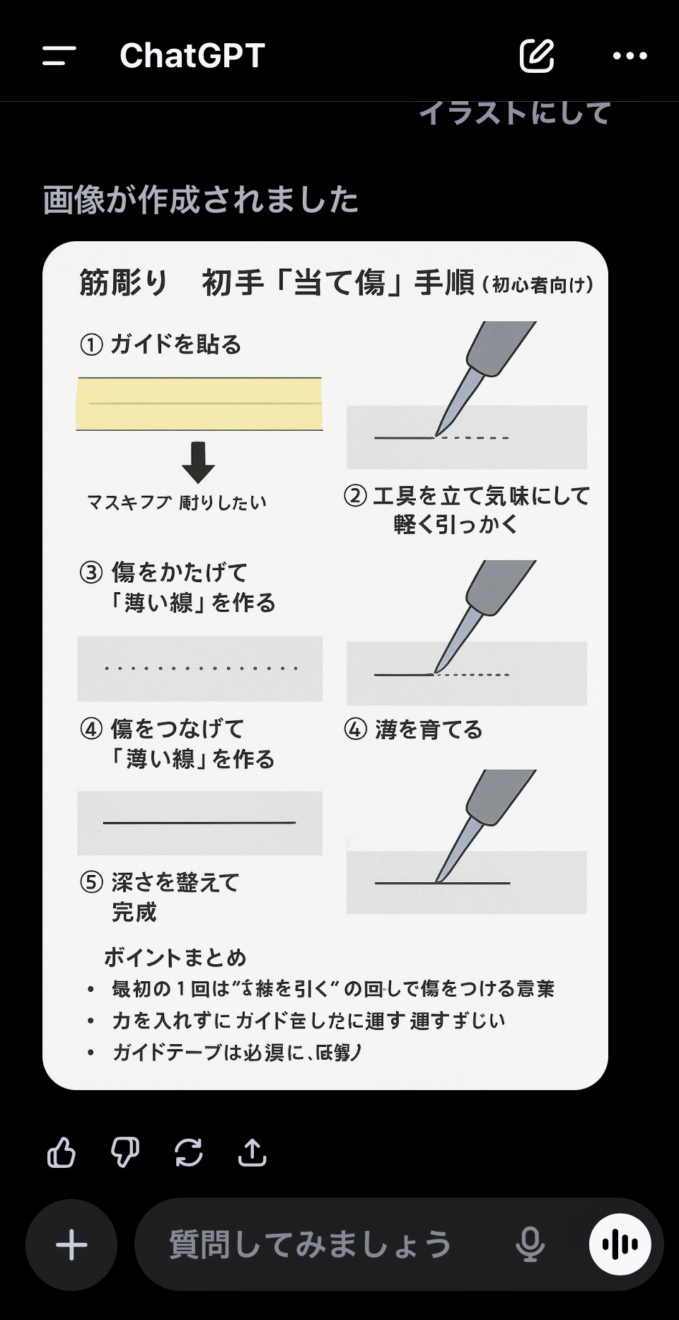 筋彫り 説明 わかりやすく 上げて