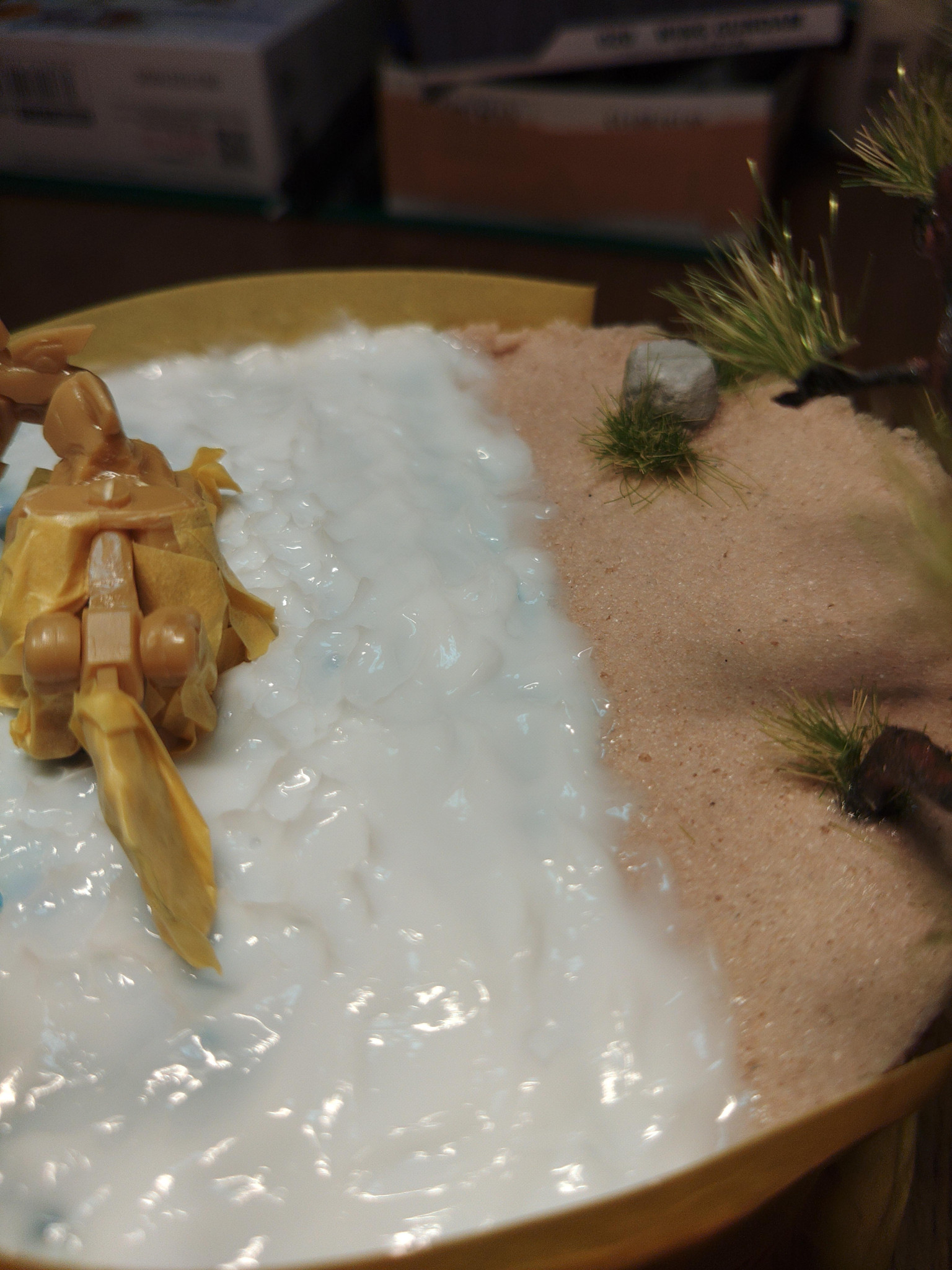 ハマチニコフ 2025.10/05更新 ジオラマ(ヴィネット)台座3「那須与一頑駄無 スペリオルディファイン」制作中 24 9 いいねしたモデラー(9) 2 作品を共有 松を植えました。 ・ 波表現のためにリキテックスのベビージェルメディウムをのせました。乾くと透明になり艶がでます。 ・ 浜に打ち寄せる波打ち際の表現は緩やかに、馬の周囲は荒く波立つように表情を作りました。 乾いたらどうなるか(笑) ・ 頑駄無の右脇後ろに箙(えびら)と言う矢筒を作りました。 これ、伸ばしランナーとランナータグです(笑) 同じく矢も作りました。 制作中 ガンダムスペリオルディファイン 武者精太 改造 ヴィネット ジオラマ 前へ 目次 コメント コメントをして応援しよう コメントにはログインが必要です ヨッチャKID 4日前 いやーすげぇ🤤🤤波の表現惚れ惚れするっす。松も美しい。床の間に飾りたいっすね✌️✌️ ハマチニコフ 4日前 波はジェッソとジェルメディウムがあればけっこう簡単にできるので、お暇があればやってみてください✨ 楽しいですよ👍️ ハマチニコフ 十数年ぶりに改造、塗装など本格的にやります! アーティファクトで(笑) ハマチニコフさんがお薦めする作品 アーティファクト・Wガンダム アーリータイプ・可動・可変改修 RX-93-8 FAT <アーティファクト> ガンダムアーティファクト Ex-Sガンダム アーティファクトヅダ ”ヅダL(ライトニング)” 9 ΖⅡ(ゼッツー) ガンダムアーティファクト ZⅡ(ゼッツー)●ガンダムアーティファクト第3弾[Zガンダム… 9 Ζガンダム(ウェイブライダー) ガンダムアーティファクト お待たせ致しました!ガンダムアーティファクトと言うことで、ス… 9 フルアーマーガンダム(追加重兵装) ガンダムアーティファクト 〇ガンダムアーティファクトのフルアーマーガンダムを改造、全塗… ハマチニコフさんのページ