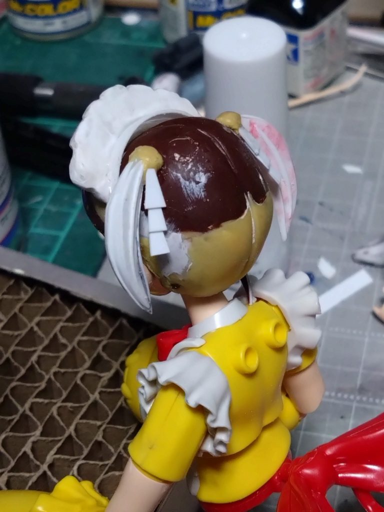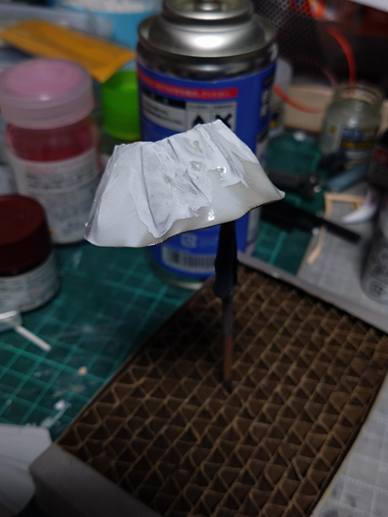 その後サーフェイサーホワイトをベタベタと筆塗りしました。