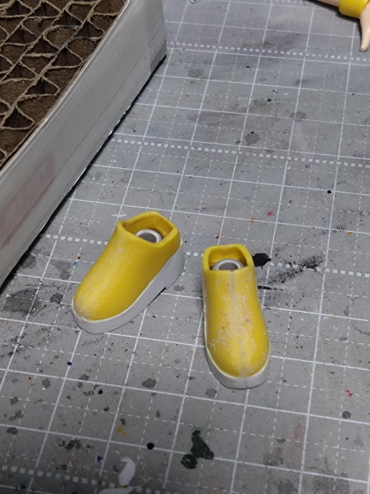 後は靴なんですが幅広でカッコ悪いので左右半分にカットして真ん中削って接着して幅詰めしました。