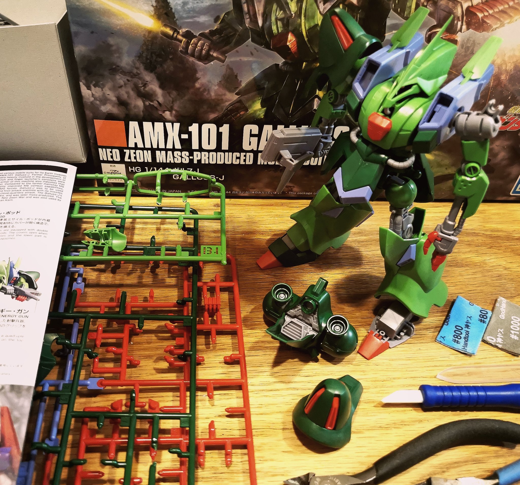 スタイルは胴体を延長しただけですが、ランナーの端材と、初めて買った3Dプリンターのアフターパーツでディティールアップしていきます。