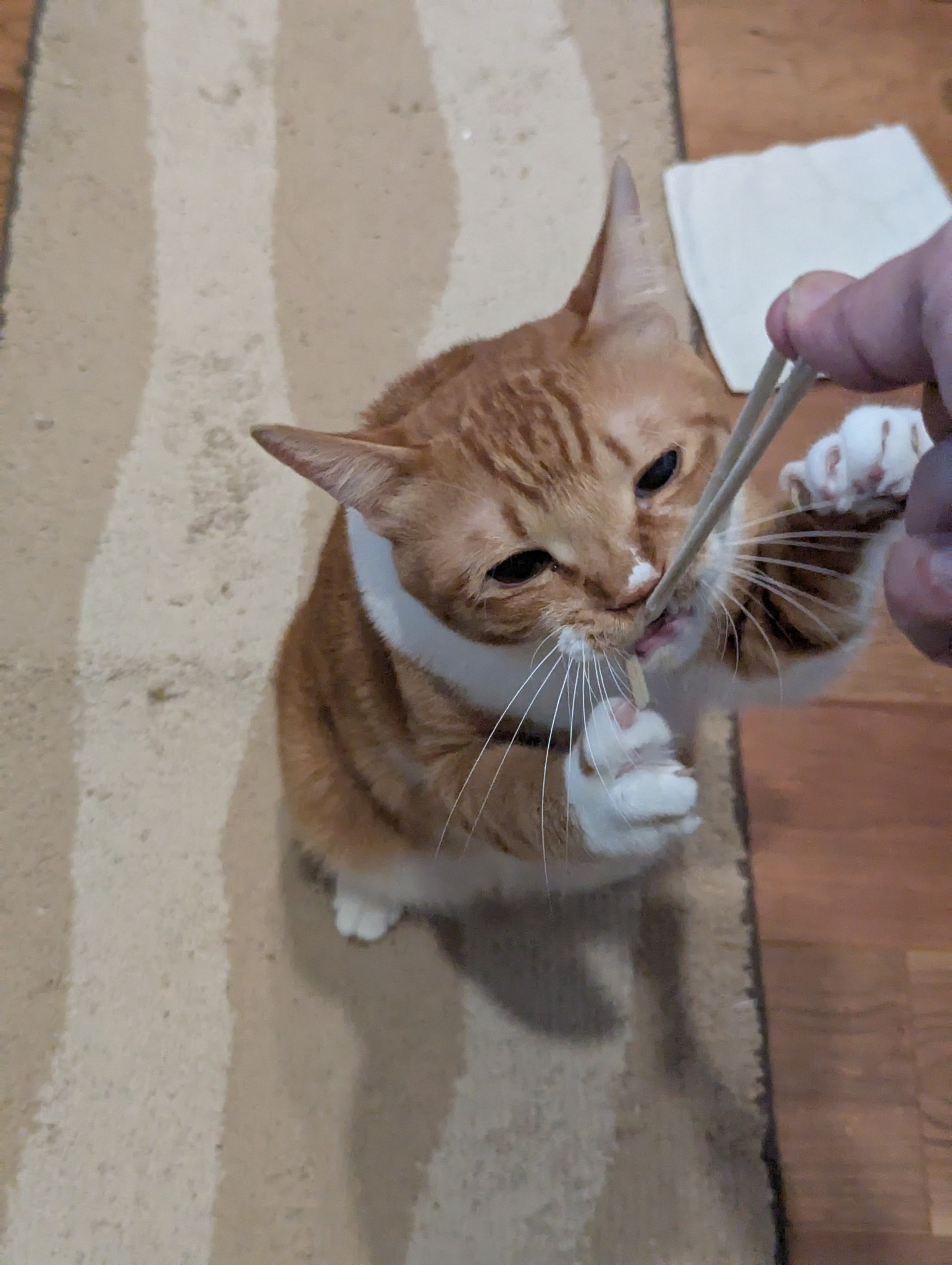 わーネコ氏いいなぁ〜🤤🤤噛み噛みしてるなぁこれ、紐ですか?