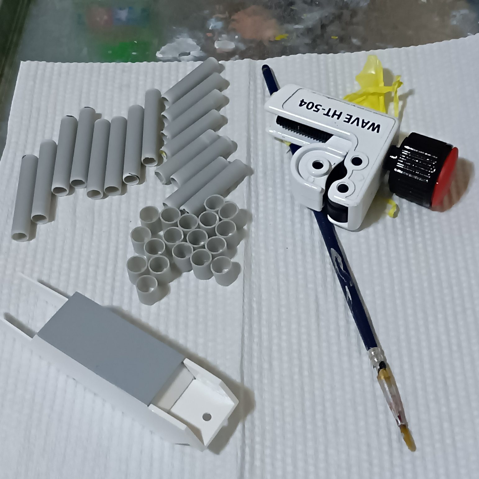 同じ長さのものを作るには、最初に定規でしっかりと測り印を付けそこをデザインナイフで軽く切り込み、その切り込みにパイプカッターを当ててあとをつけ、またデザインナイフで切り取るとかすれば多少は揃った大きさには出来るかな?と思います😅