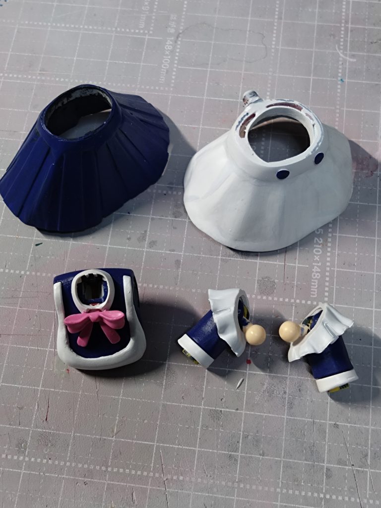 ape100 2025.10/18更新 アニメ「ダンダダン」綾瀬モモちゃん メイドver 32 29 いいねしたモデラー(29) 2 作品を共有 前回の悲しみを乗り越えメイド服が何となく仕上がりそうです。 顔パーツも少し。 クリアーでツヤツヤ仕上げだった顔パーツに100均で過去に購入したアイカラーパレットとか言うものの真ん中のカラーを目の下、ほっぺあたりにポンポンと。 粉状なので綿棒でサッとこするとほんのりピンクに。 この状態から艶消しクリアーで保護しました。 せっかくのチナッガイなので何かできないかと考えてますが髪型変更の為にクマ頭を被せるのは難しいようです。 うーん何もできなかったらこのまま投稿になるかもなぁ。 制作中 コメント コメントをして応援しよう コメントにはログインが必要です ape100 3か月前 ありがとうございます。 パーツ未塗装の時は感じませんでしたが、塗装してから仮組みしてみると既にオッサンキラー発動。 メイドにこんな魔力があるとは恐ろしい。😍 しろ 3か月前 サムネだけでもうカワイイ!笑 悲しみの先には萌え萌えキュン!の魔法が待っておりますな~!笑 (;´д`)メイド喫茶ぢゃないってばよ。。。 ape100 子供のころからガンプラ好きです。 難しいことはできないので自己満足で楽しんでます。 ファーストガンダム好きですが最近の作品も映像が素晴らしくて好きです。 美プラ沼にも浸かっております。 変な作品もありますが私の作品気に入ったら気軽にコメント、フォローお願いします。 沢山の素晴らしい作品を見て自分の技術のレベルアップをしたいです。 よろしくお願いします。🙇 ape100さんがお薦めする作品 歴戦グフカスタム寒冷地仕様 ガトリングガンランス装備 セイラ & Gファイター パーフェクトジオング バルバトス ルプス ディアボロス 5 チョコサプ ガンキャノン 紅組なのでガンキャノン。 紅組に少し貢献する為簡単塗装で間に… 9 MIGHTY STRIKE FREEDOM GUNDAM 今年も昨年同様の紅組にしましたが年末の仕事が忙しくて疲れもあ… 17 パーフェクトジオング 制作途中はずっと投稿してましたが完成したのはオラザクに投稿し… 15 バルバトス ルプス ディアボロス MGバルバトスが完成しました。 今回は筆塗りで派手にウェザリ… ape100さんのページ この作品をお薦め作品に設定する Please login to update your profile! Please login to update your profile! Please login to update your profile! Please login to update your profile!