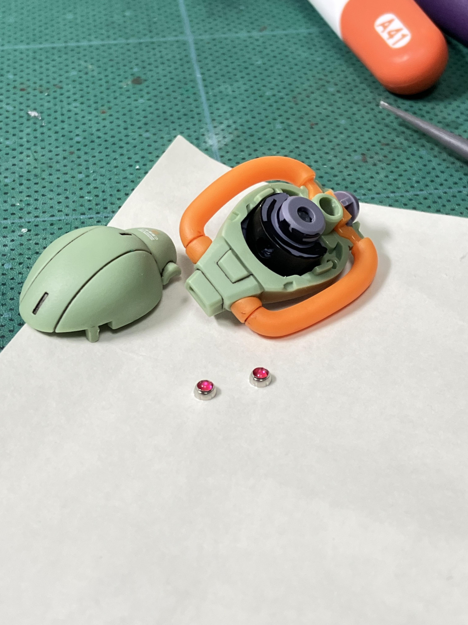 両肩のスリット部に付属シールの余りを使ってなんかセンサーっぽいのを仕込みたくなりました、思いついたら抑えきれない😬