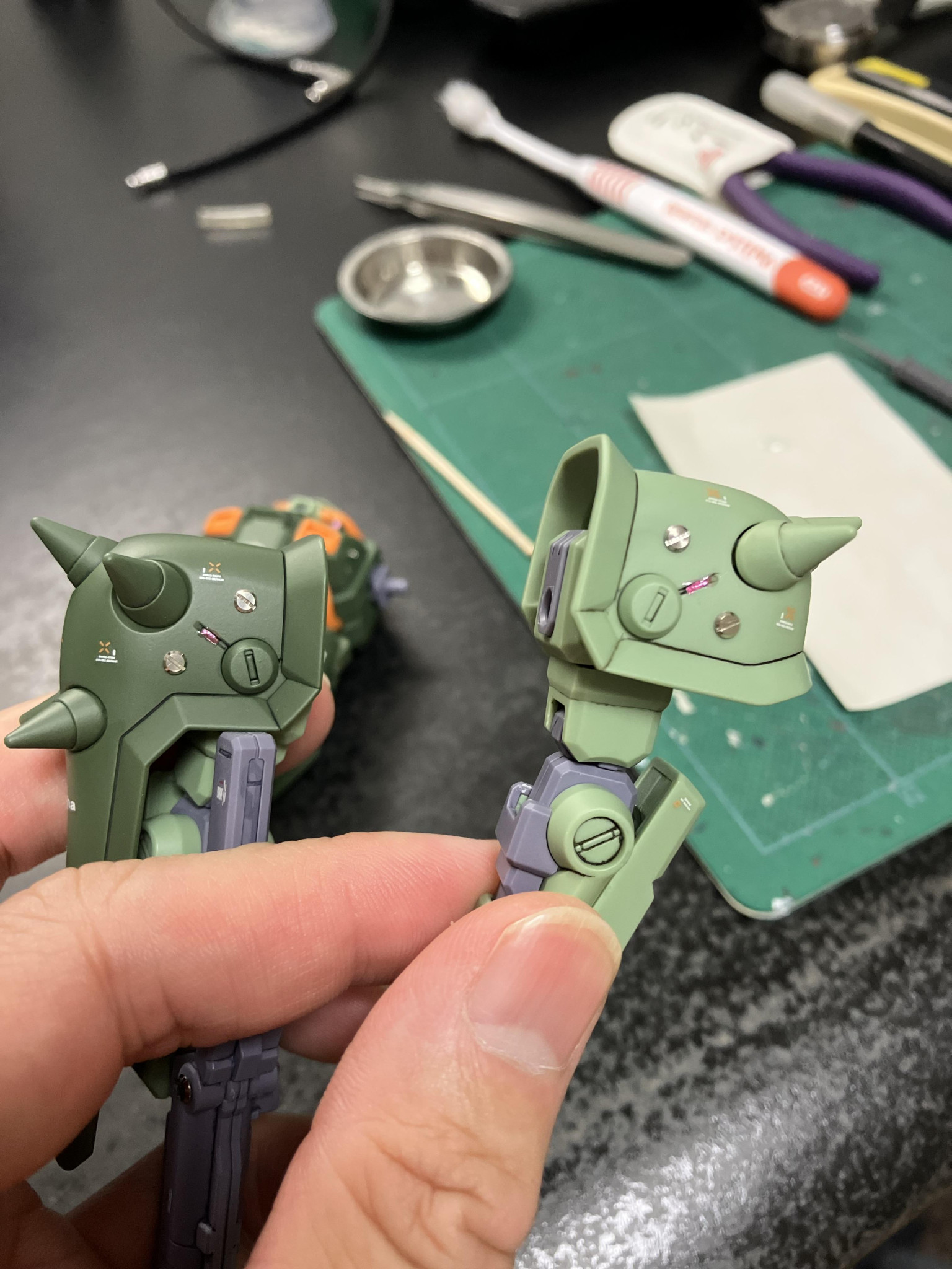 HGハイザックカスタムもトップコートを終えて、あとはチマチマとメタルパーツやらレジン赤処理で完成間近🥰