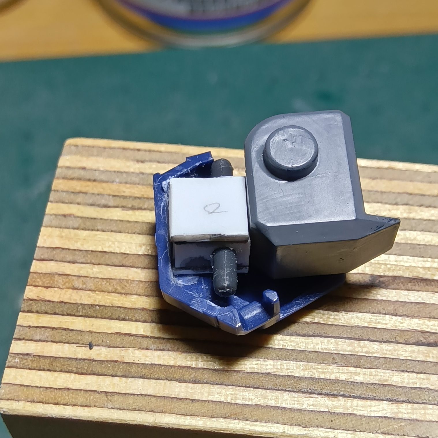 肩と肩アーマーをポリキャップとプラ棒で接続できるようにしてみたのですが、ポリキャップをプラ板で囲った部品が厚みが出てしまってアーマーのパーツに収さまりませんでした💧