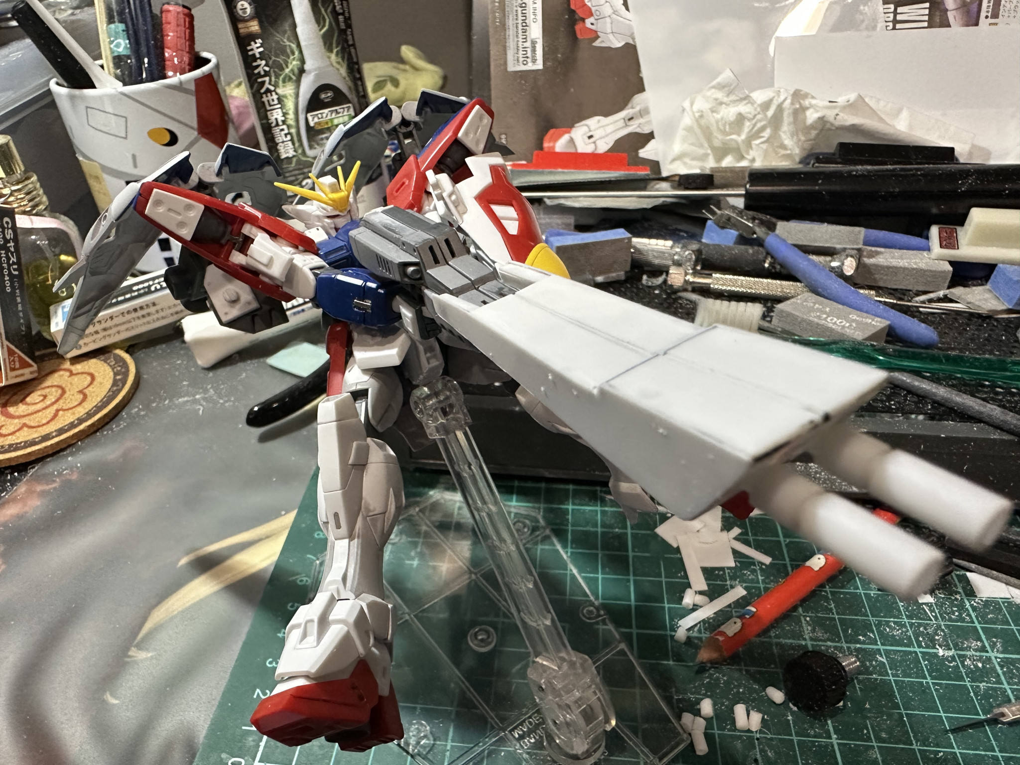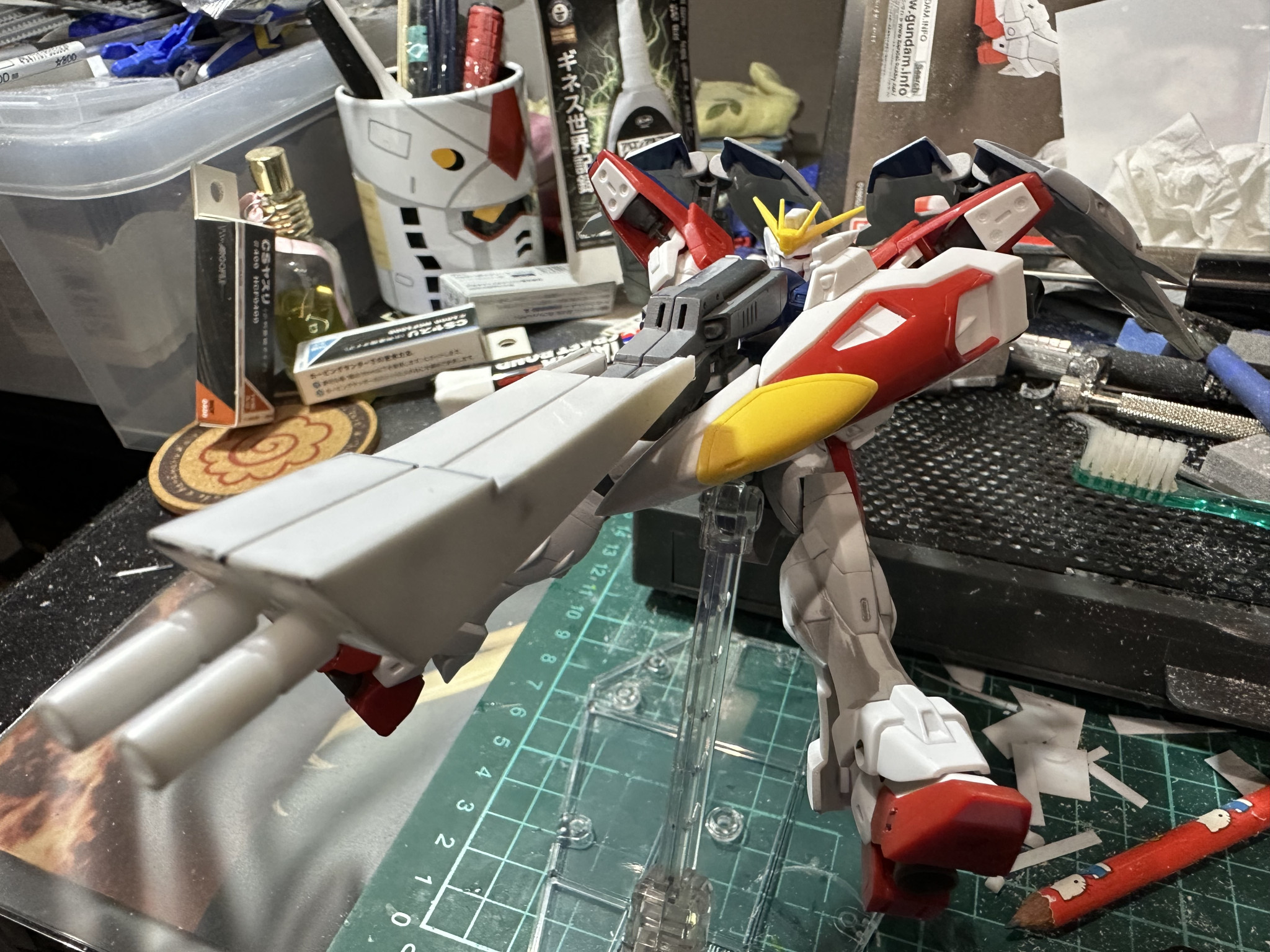 O846 2025.10/22更新 手首の調整 48 11 いいねしたモデラー(11) 0 作品を共有 ツインバスターライフルの両手持ちのストレスを無くすべく手首角度をつけてみました。 切ってはるだけなんですが中々大変でした。 プラ棒の切断角度が合わないんですね。 切り飛ばしたプラ棒が行方不明になど中々難儀でした。 オーバーパース用のパーツもプラ板を2枚づつ貼り付けライフルが連結しているような風にいじりました。 プラ棒の墓場がw 制作中 コメント コメントをして応援しよう コメントにはログインが必要です O846 はじめまして、O846(おやしろ)と申します。 宇宙世紀メインで投稿して行けたらなと思います。時々つまみ食いしますw 脳内設定の機体も投稿していきたいです。 よろしくお願いします。 O846さんがお薦めする作品 【HG】V2アサルトバスターガンダム 【 HG】MSN-00100 百式 【マットキャンディ塗装】 17 【HG】V2アサルトバスターガンダム https://www.youtube.com/watch?… 【HG】RX-79BD-1 ブルーディスティニー1号機【簡単… EXAM発動時をイメージして蛍光赤でスミ入れしました。 既存… 【HG】 MSZ-006 Zガンダム(リヴァイブ版) 改修&… HGリヴァイブ版Zガンダムの改修 全塗装しました。 動画もあ… O846さんのページ