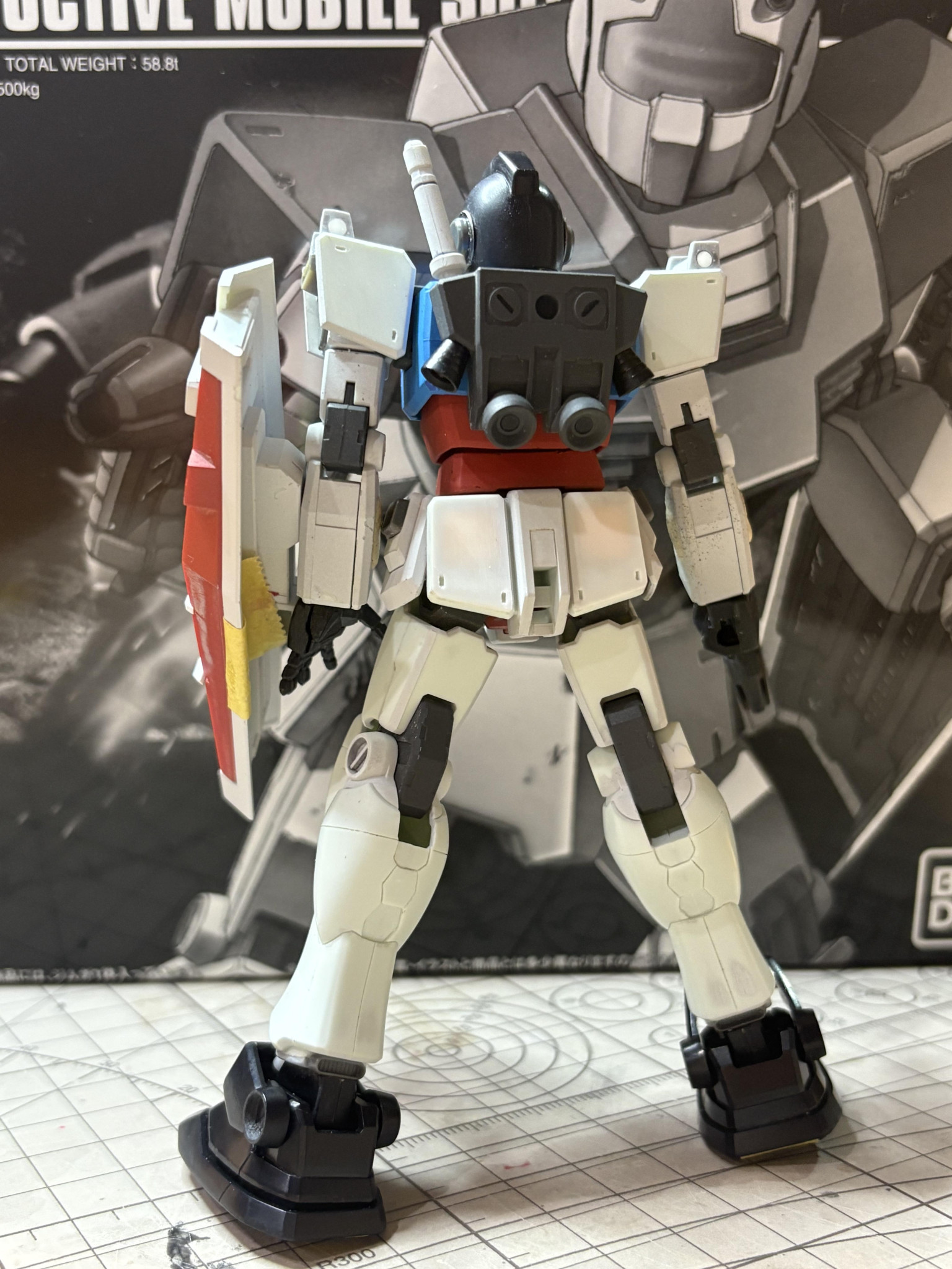 HGUCジム(エコプラ)を使って、ジム(スレッガー機)を製作中です。といってもジムは頭と武器と足だけ使って、それ以外は全部EGガンダムを使ってます。スレッガージムがかっこいいので作りたいっ!と思いましたが、買えないのでやむなく出来るだけ寄せようとジムとガンダムのニコイチです。