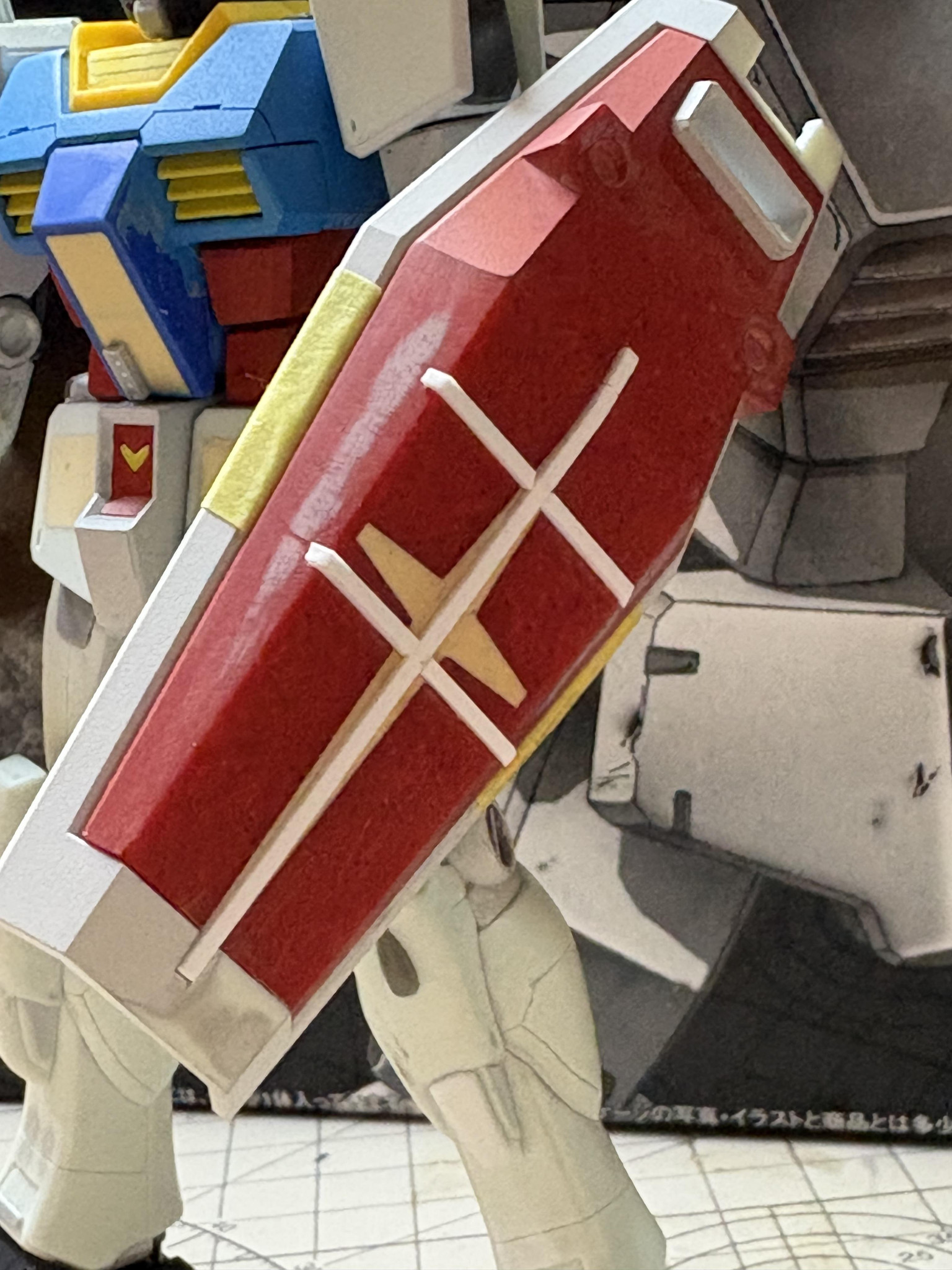 スレッガージムは結構デティールが入ってて細かいんですね。苦手なスジ彫りを頑張りました。シールドもクロス部分を埋めてスレッガージムのシールドに近くなるように工作しました。