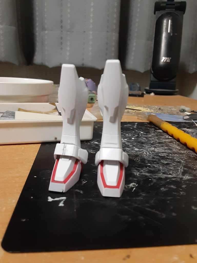 これらの工作で脛や足首がいくらか太く、短く見えるようになったはずです。高さが2mm弱低くなったので、その分は腿を伸ばしてバランスをとる予定。