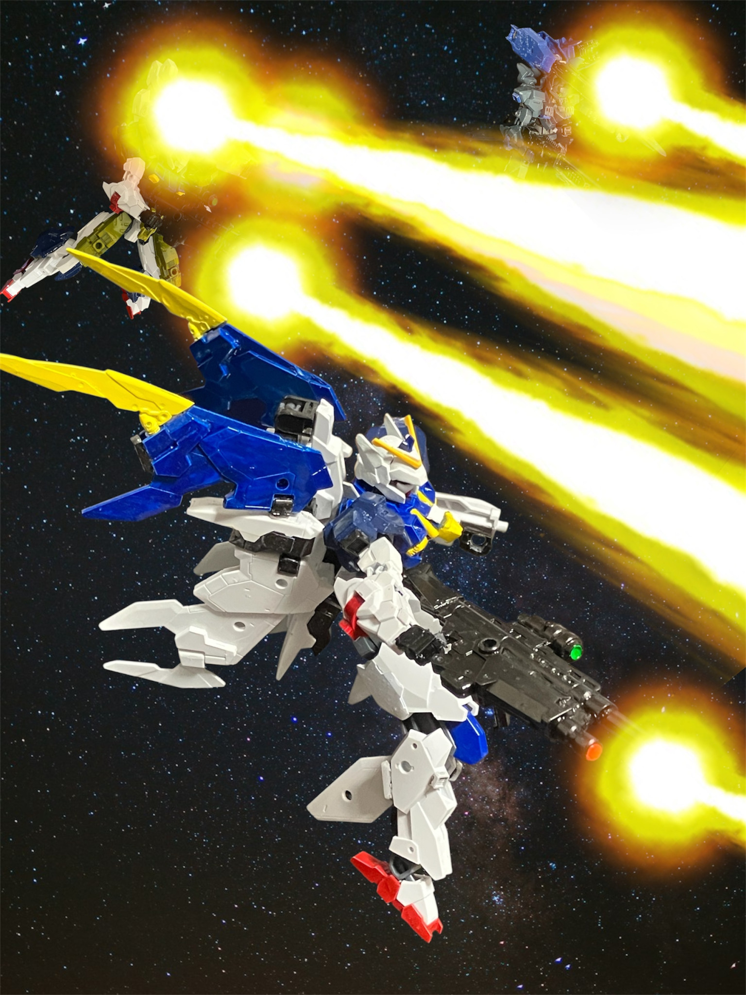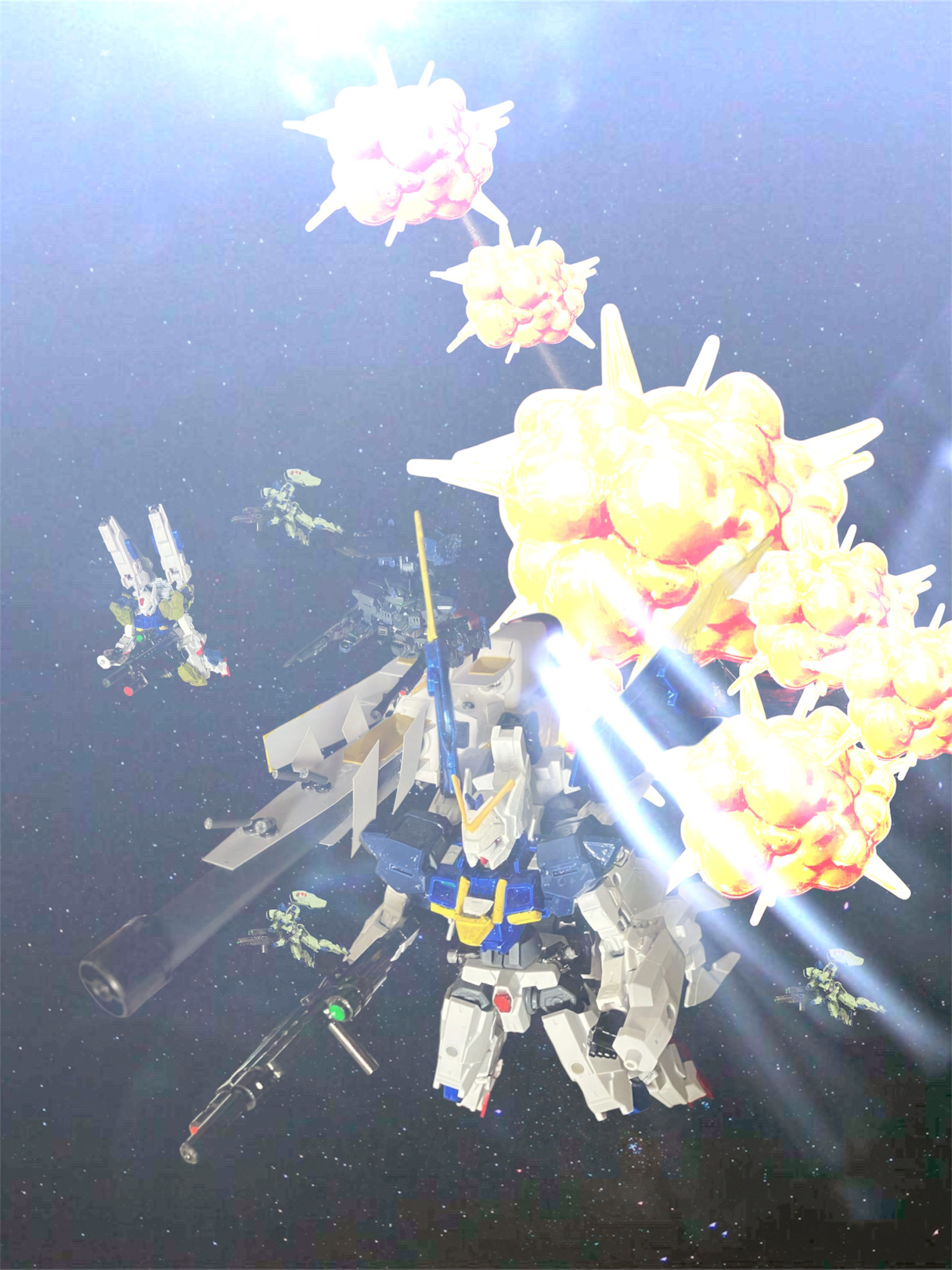 3機のMSから放たれる光の帯がリカルキノスを包み、爆発。数秒後、周辺が連鎖爆発を起こす。