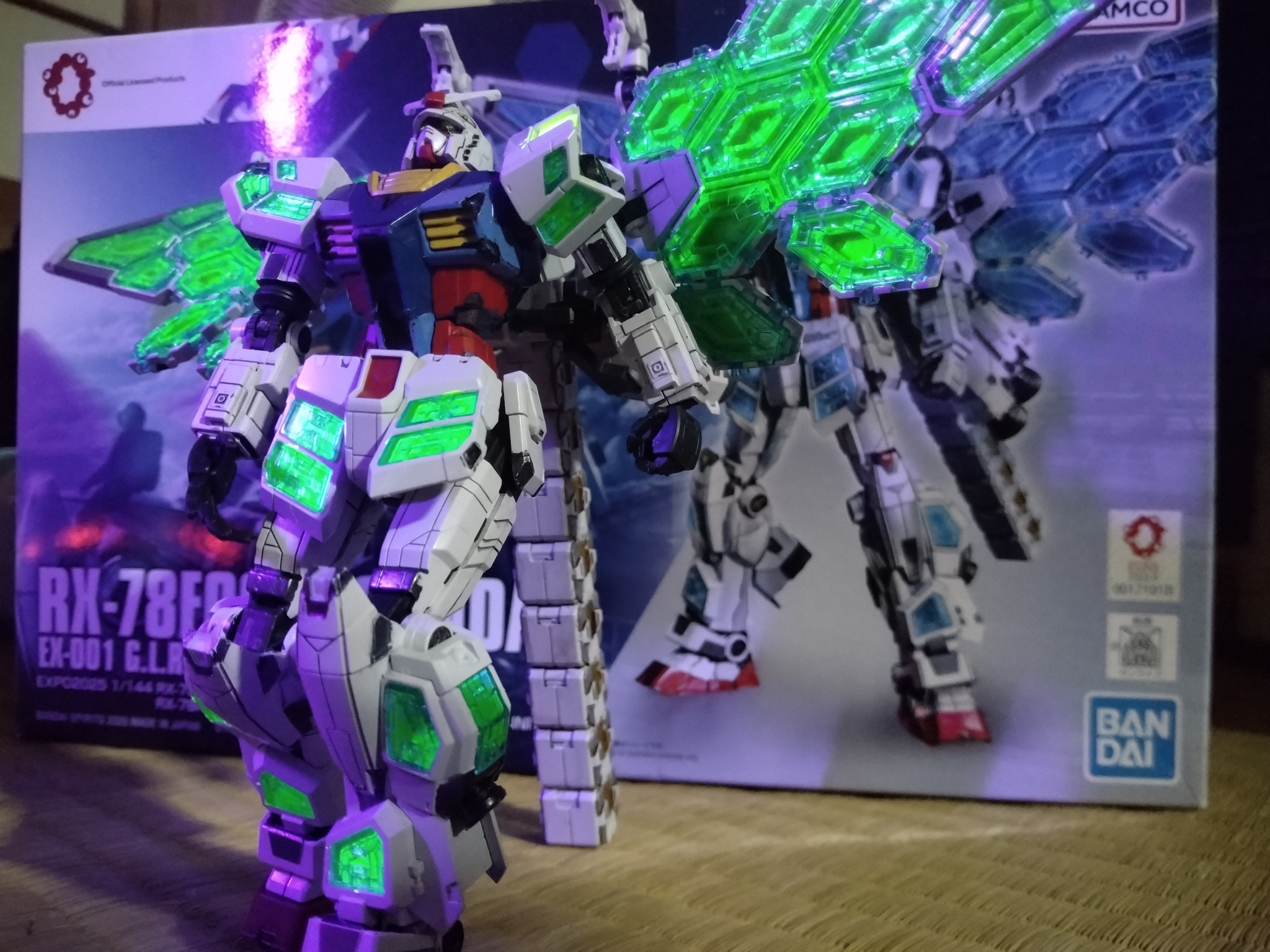 はならっきょ 2025.10/26更新 大阪万博でガンダムを見て 16 6 いいねしたモデラー(6) 2 作品を共有 初めてのガンプラにRX-78F00/Eを組み始めました。 大阪万博の立像状態はパビリオンの動画で視聴者を守る為に戦って破損した後とのことで、その立像の完全修復後をイメージして作ってるので、塗装は立像準拠にしていますがガンダム自体が初心者なので白は1色だけです😅 制作中 コメント コメントをして応援しよう コメントにはログインが必要です アベラギ 1日前 初投稿おめでとうございます! グラスフェザーの発光感が元のカラーより好きです! この出来はガンプラ以外の模型はやってる人の出来ですな! はならっきょ 1日前 ありがとうございます。 とにかく達人の皆さんの技法を取り入れて見栄えのする様に作るように心掛けました。 グラスフェザーはシャインシルバーの下地に蛍光イエロー(たまたま模型店にコレしか在庫がなかった)です。 太もも下の膝のボックスの形状修正は、立像に倣っています。 お察しの通り普段は鉄道模型をやっていますが、ガンプラ、凄く楽しいですね。 実物という概念から離れて自由に作れるのが魅力的だと思っています。 はならっきょ 大阪万博で見たRX-78F00/Eをカッコいいとか思ったので作り始めた初ガンプラです。 JAL仕様も仕掛中、コチラは万博ガンダムの想像図準拠を狙っています、よろしくお願いします。