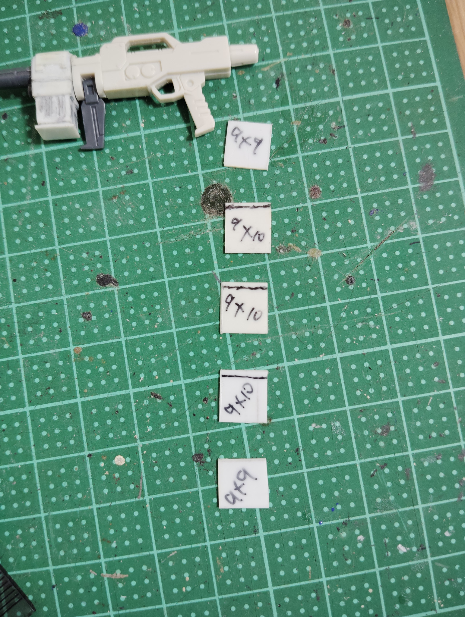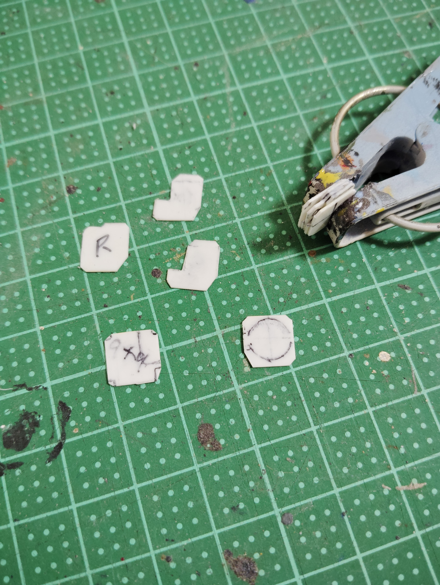 まずは0,5mmのプラ板から、必要なパーツを5枚×左右で合計10枚切り出していきます。